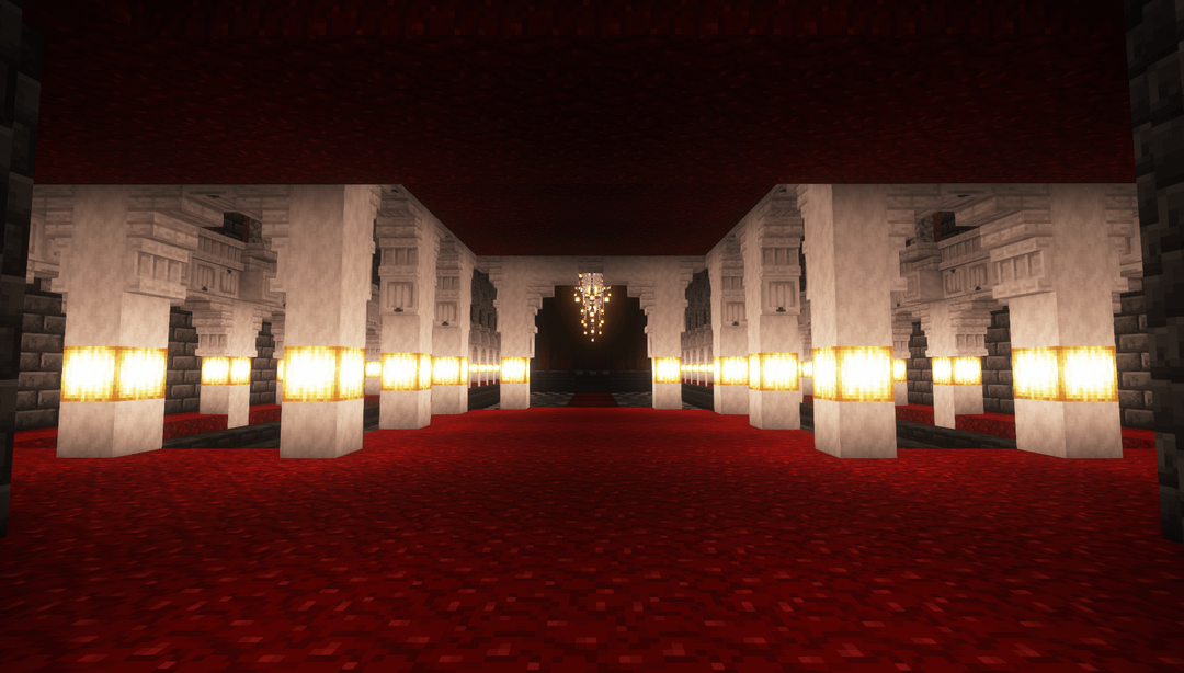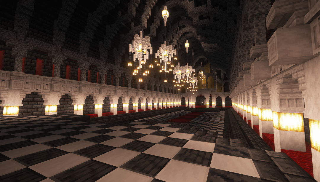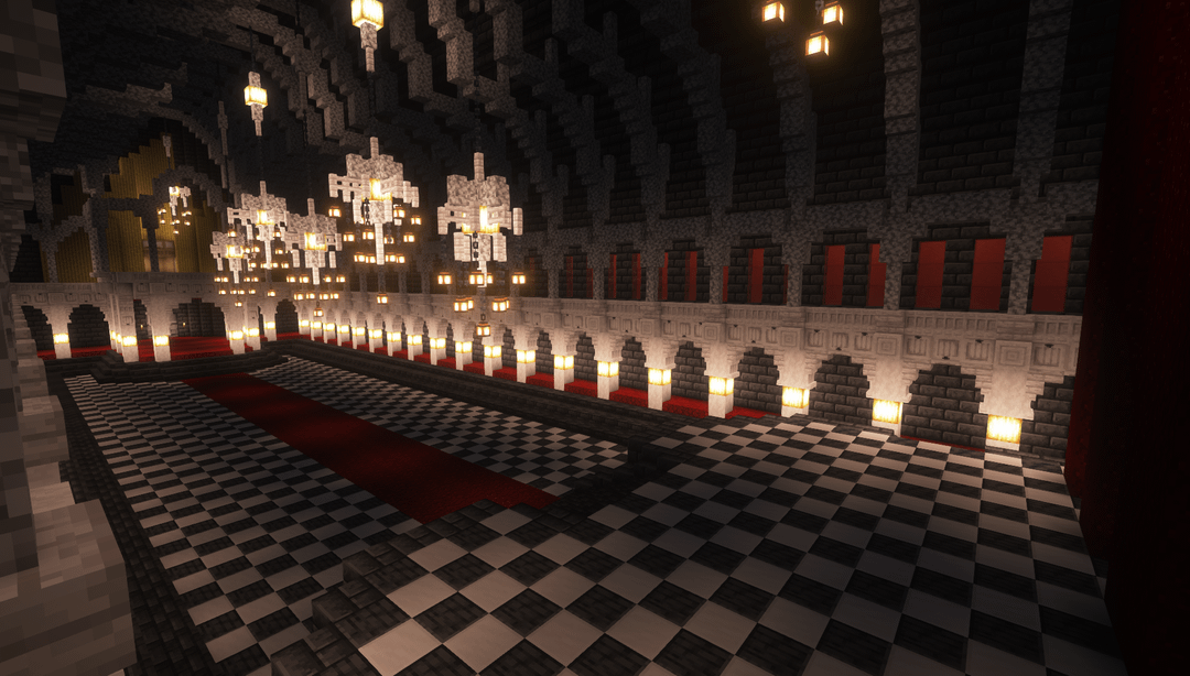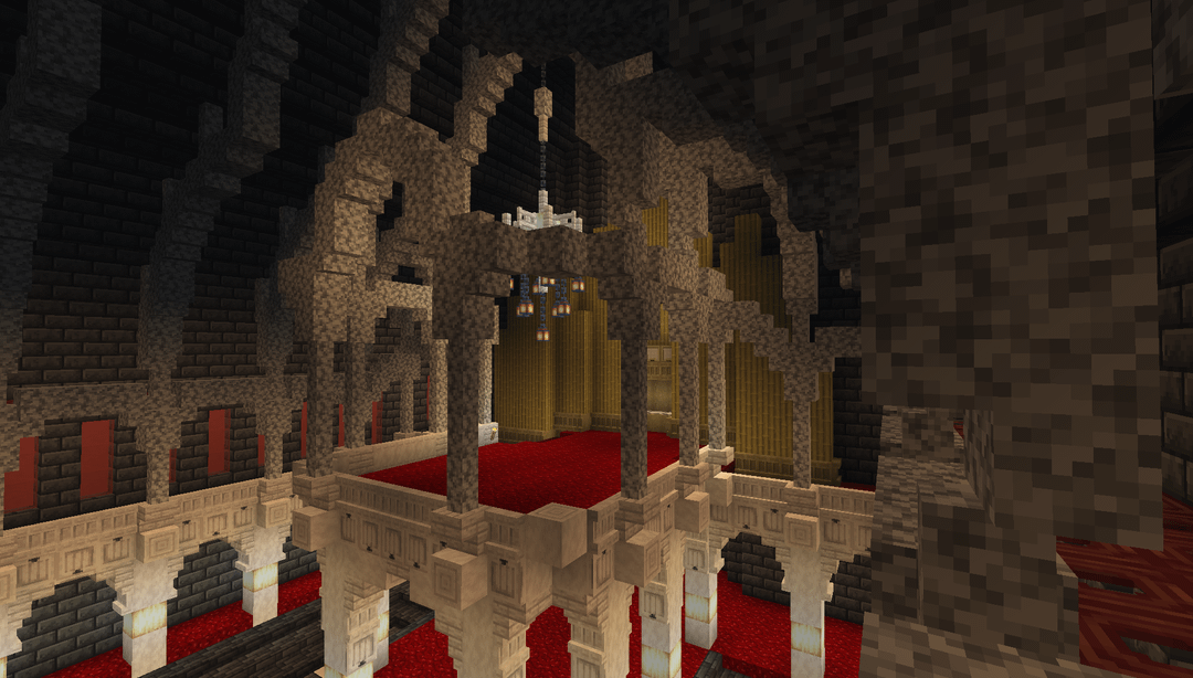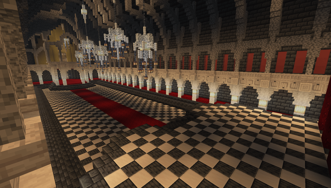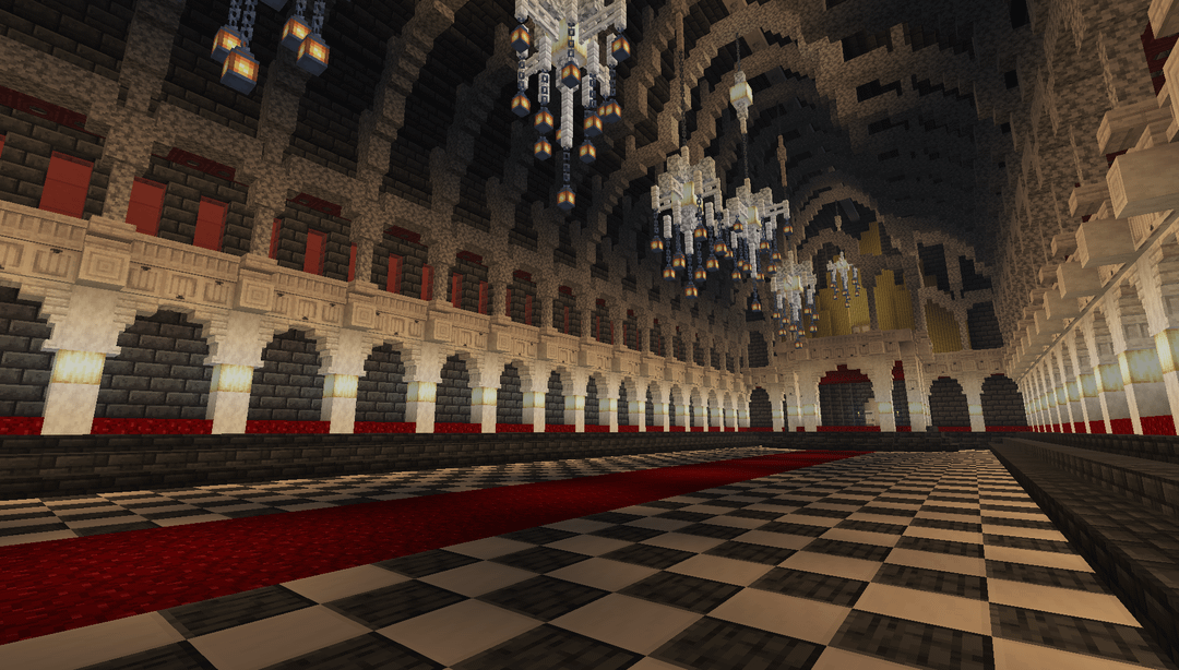 A grand hall I'm hoping to build in a survival server… about sometime ever. This was made in a creative world to recreate it with Litematica, but I've lost the motivation to dig an over 30x30x60 space in the deepslate layer. by UsefulRice8238 Minecraft Minecraft Builds