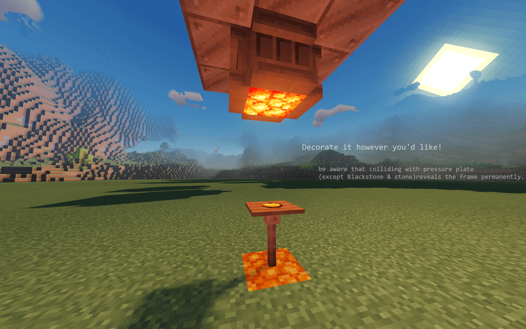 I'm not sure if anybody made it before, but the different color variations makes it pretty cute. *any block would work instead of pressure plate to place the pressure plate on the copper rod by Larkyndel DetailCraft Minecraft