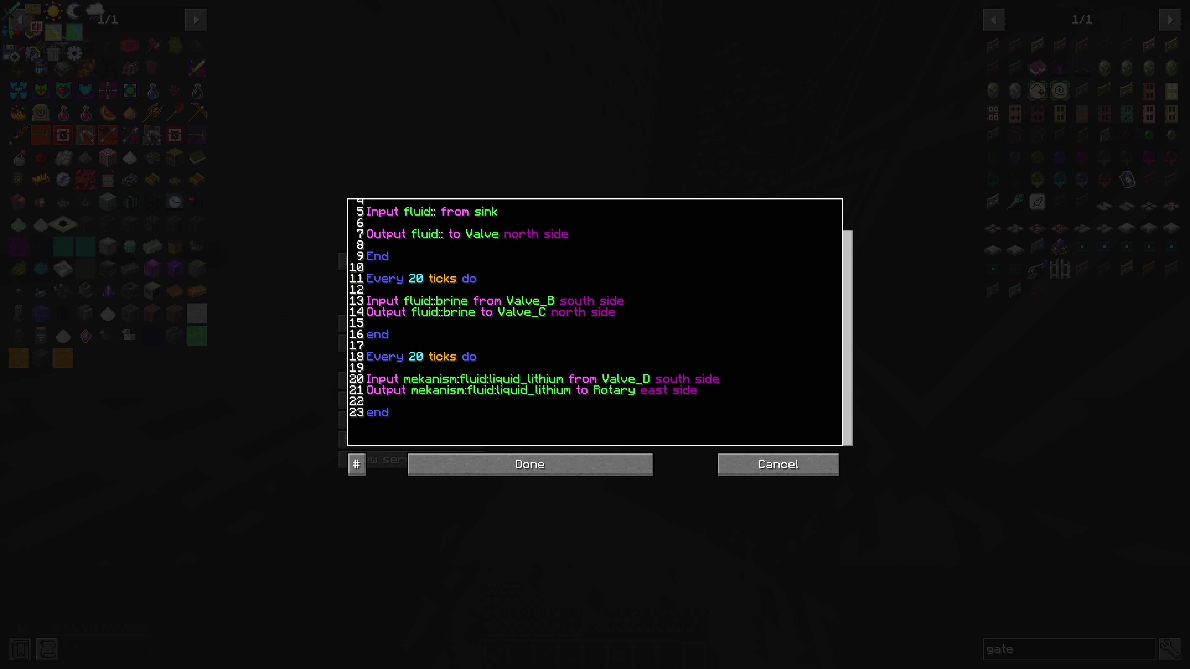 So every part of it works until I get to the lithium. I think it’s just the way I’m labeling it but I’ve tried all different varieties and can’t get it to go. I don’t know what exactly I need to call the liquid lithium to get it to go to the rotaries. I have the rotaries set up to input liquid from the side the inventory cables are on.