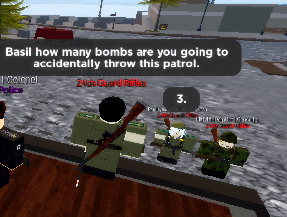 Basil did in fact throw exactly three, killing two airmen, wounding a visiting allied soldier and destroying a military police vehicle. Basil was promoted the following day. by Mister_McKee ROBLOX