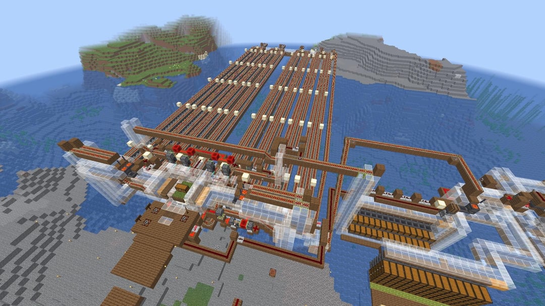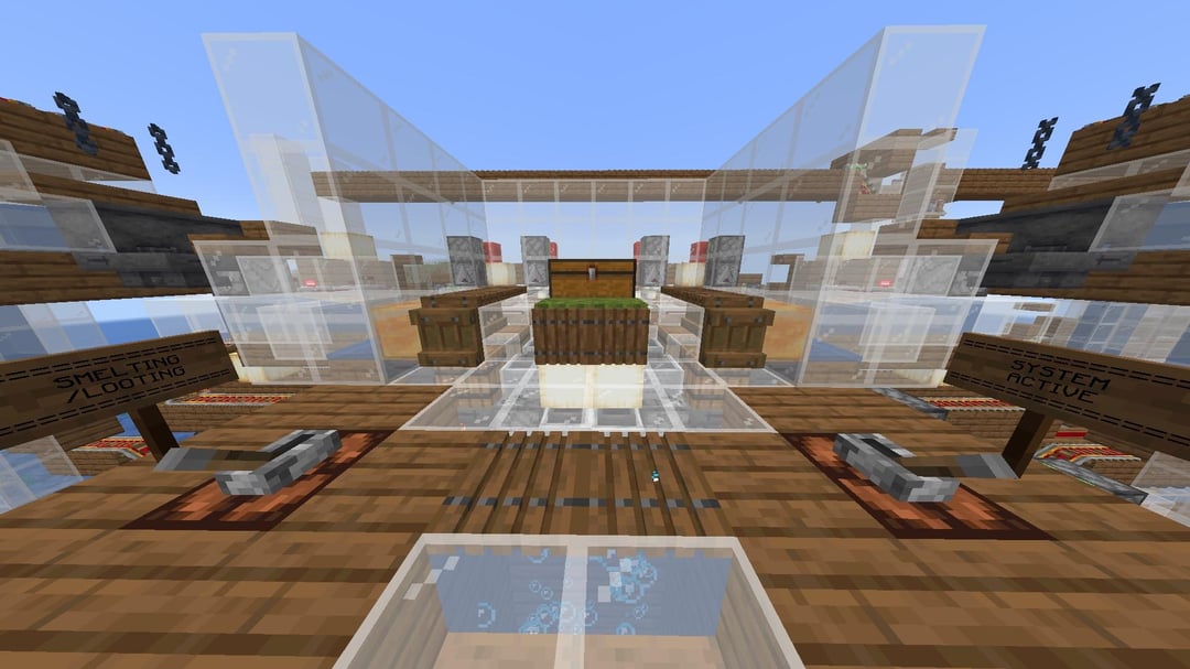 Melts through a double chest of items in well under a minute, powered by bamboo. my proudest creation yet. by BigOfficialEros Minecraft Minecraft Redstone Redstone