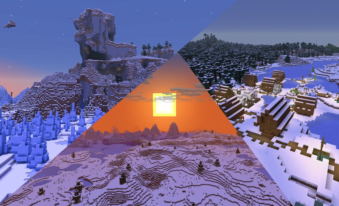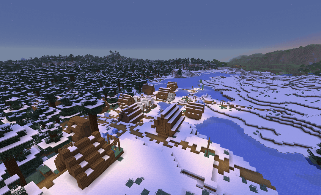 Huge cold biomes: Beautiful mountains, ice plains spikes, forests, snowy tundra, frozen ocean, 3 villages. Seed: -7088383525285973337 by canard_a_roulettes Minecraft Minecraft Seeds