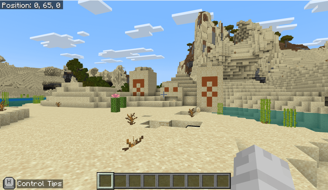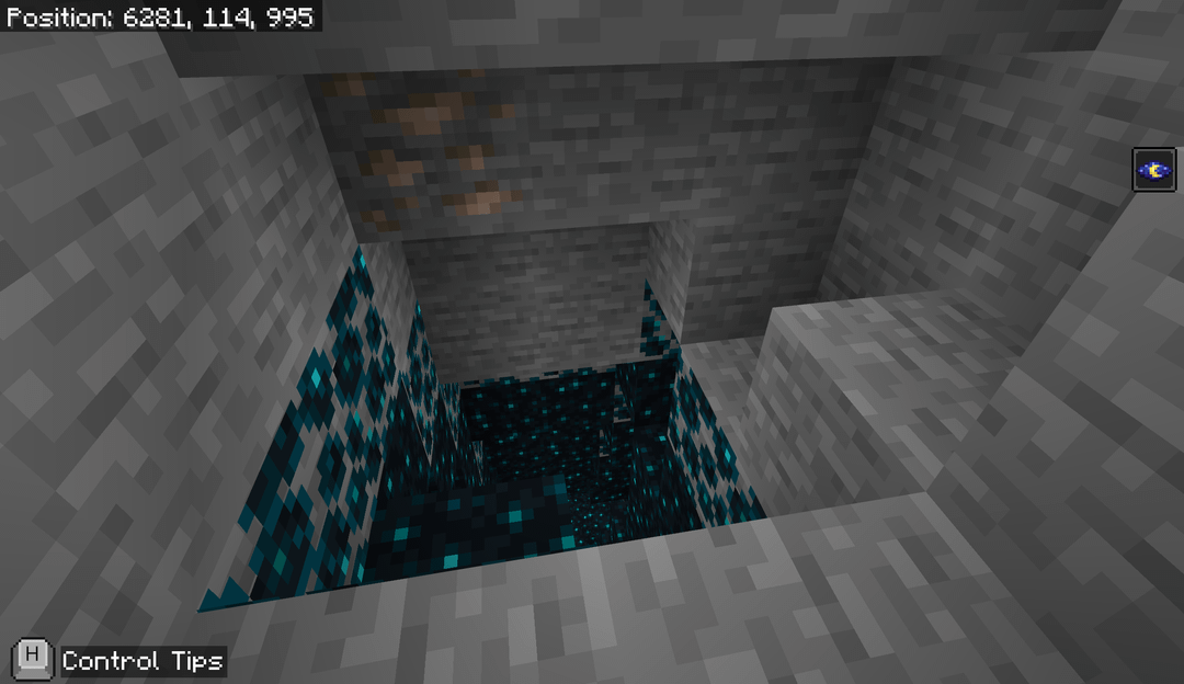 So, you spawn in front of a desert temple and a ruined portal, the temple with an enchanted golden apple in its chest. That is not all though. Travel to the coords 6281, 114, 995 and you will find a deep dark with sculk veins as high up as Y=114! That is a full 52 blocks above sea level! I believe this is quite rare, as it requires a very high mountain biome for a deep dark to generate so high.