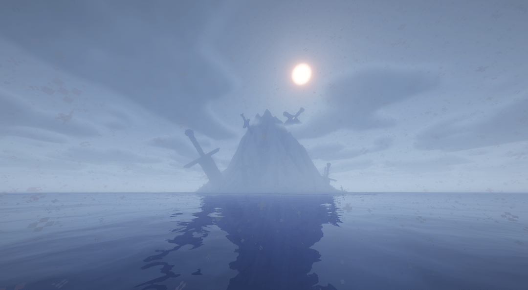 Upon that island lies swords, thousands upon thousands of rusted blades stabbed into the rocky spire, some of which appear as greenery from a great distance. (Though whether there is real flora on the island or not, is yet to be verified). The swords, by themselves, are a casual oddity explained by a scuffle of tribesman or an abandoned encampment hosting an unfortunate battalion.