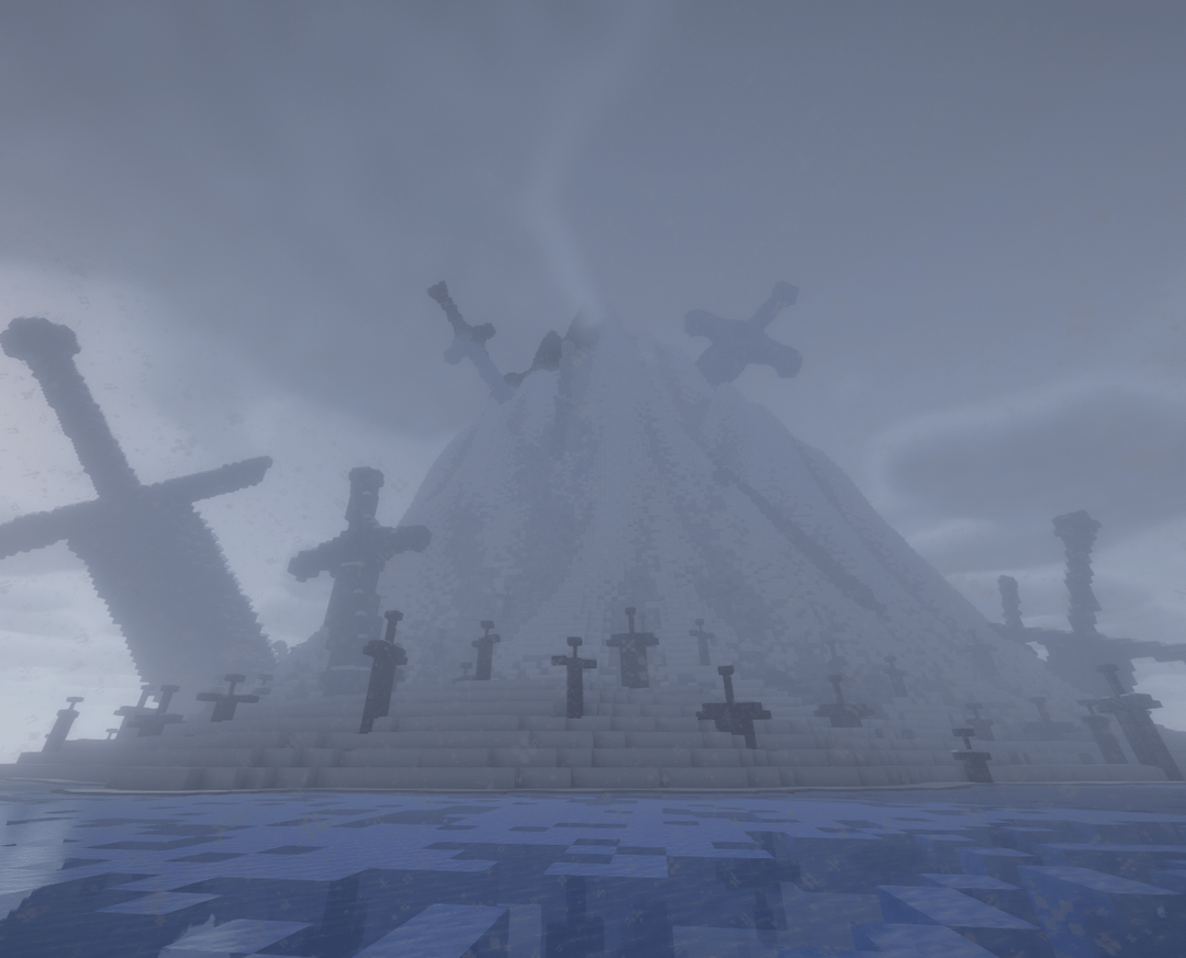 The second largest blade juts almost from the ice surrounding the peaked island, though firmly in solid ground. This one was much simpler in design: a straight blade, a straight guard, and a rounded pommel. I say simple in only that designing such a blade to my own scale would be simple, as no craftsman nor blacksmith could handle such a monstrous task.
