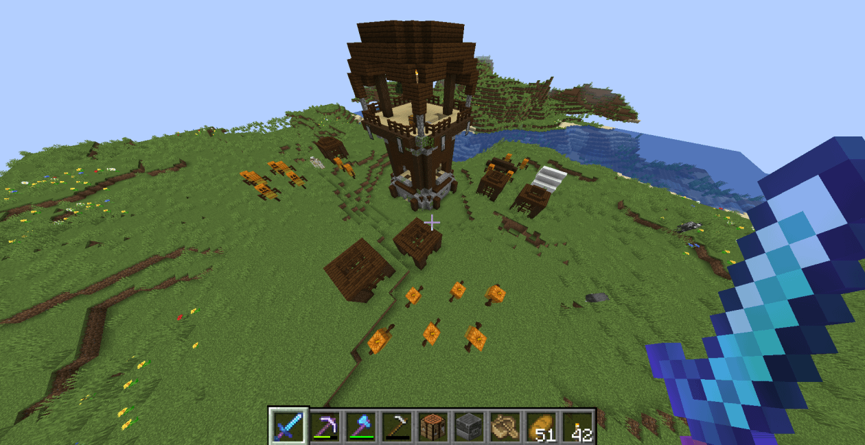 Pillager outpost with 18 scarecrows (X:7382 Y:100 Z:3145) Java 1.21.1 Seed: -8651810166676644139 by ForeignHeart5701 Minecraft Minecraft Seeds