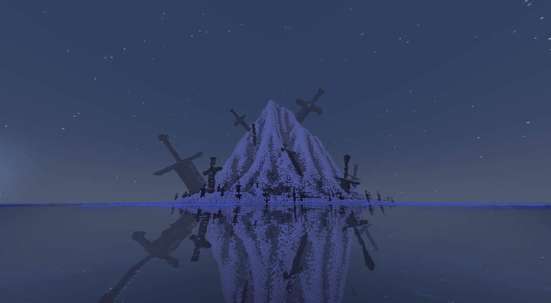 Blades buried into blades buried into blades buried into blades. This entire isle contains not one ounce of sediment nor crumb of stone, it is all steel left to rot alone in the ocean, piled so high it appears as though a mountain spearing through waves.
