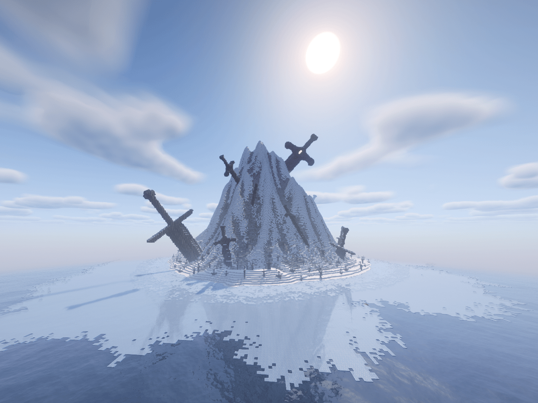 The second largest blade juts almost from the ice surrounding the peaked island, though firmly in solid ground. This one was much simpler in design: a straight blade, a straight guard, and a rounded pommel. I say simple in only that designing such a blade to my own scale would be simple, as no craftsman nor blacksmith could handle such a monstrous task.