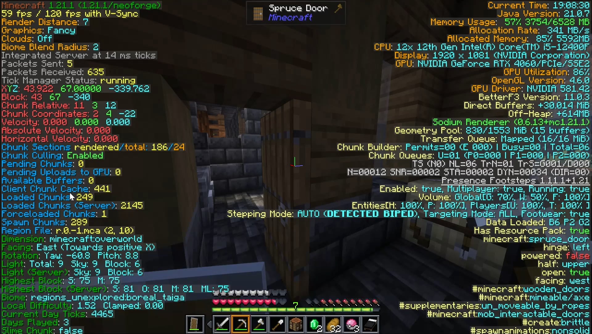 When I've been playing this cobblemon + create modpack lately, I noticed that sometimes when I open an inventory it would kill my fps and be otherwise fine. Ive been testing all day and in this village I noticed when I face this chest head on, it occurs, but only when facing that chest. It also happens everywhere on the map, but this is just where I noticed it specifically. And 70% of the time it doesnt happen. Maybe its only when facing a certain direction, im not sure. Has this happened to anyone else? (it isnt a mod that reduces fps when tabbed, I dont have any of those).
