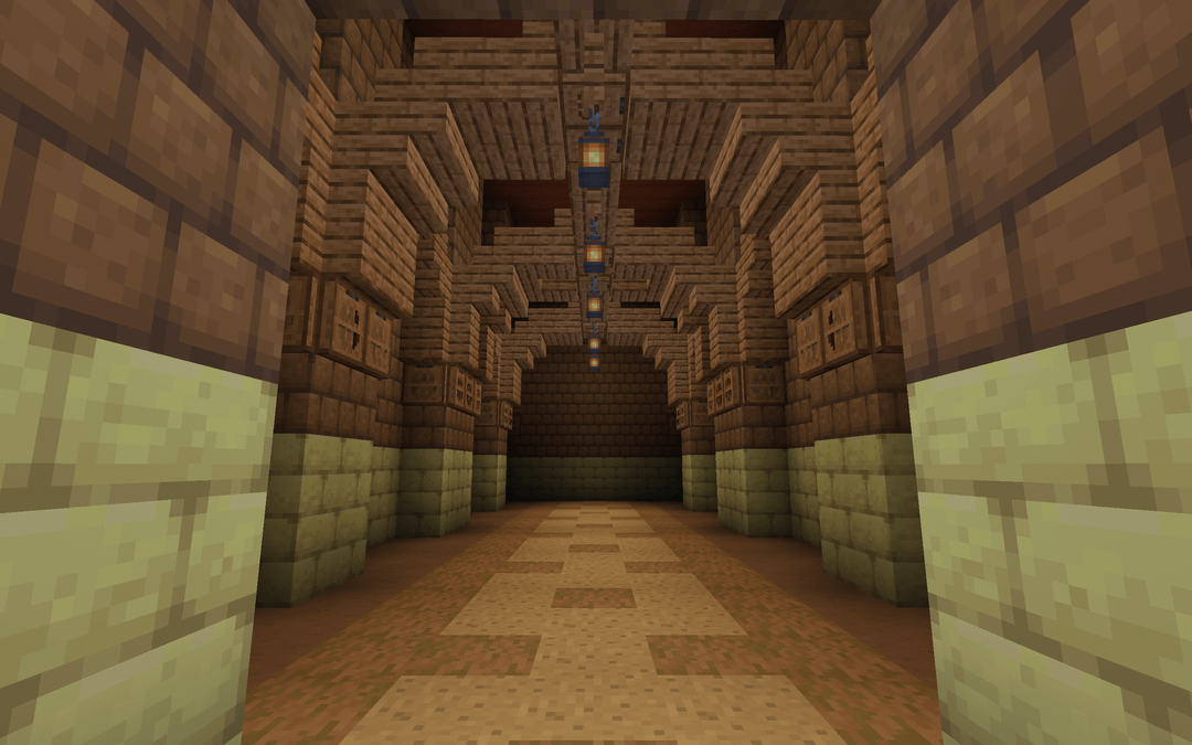 I used the mod Oh The Biomes We've Gone for a little extra block variety (Rocky Stone in the stone staircase and platform, and Blue Enchanted Planks for the pillars). I also used Axiom to make the repetitive bits easier to just copy/paste, and for the extra details like the jagged sort of trim along the base of the roof. And finally Enchanted Vertical Slabs to add a little depth.