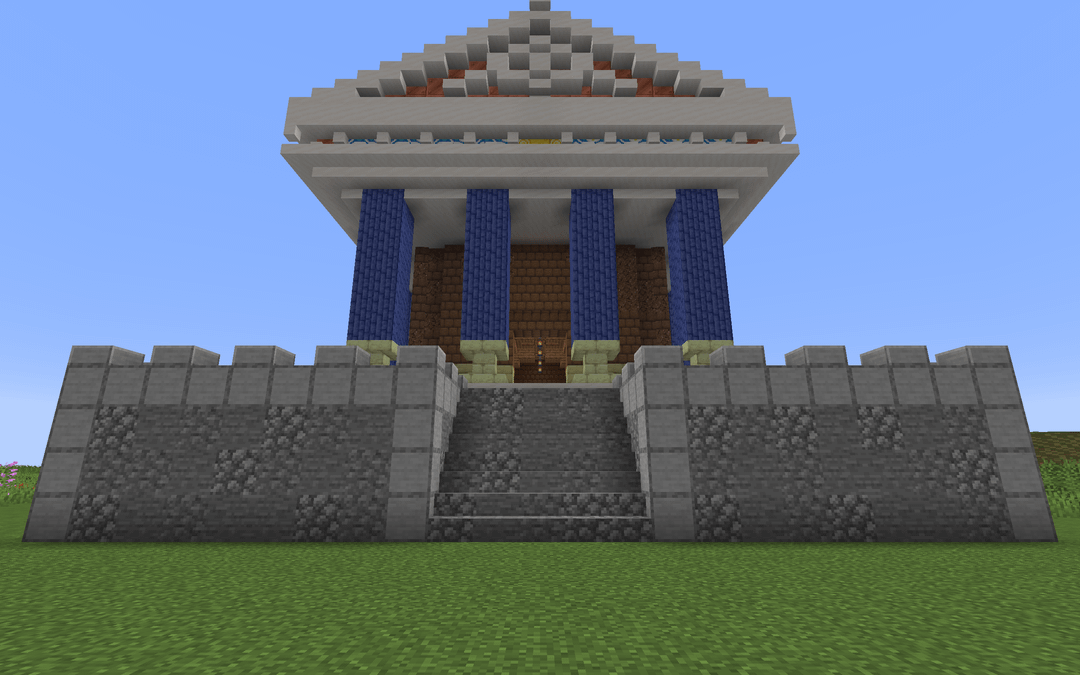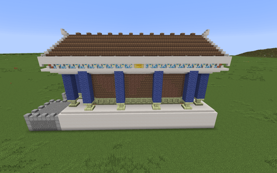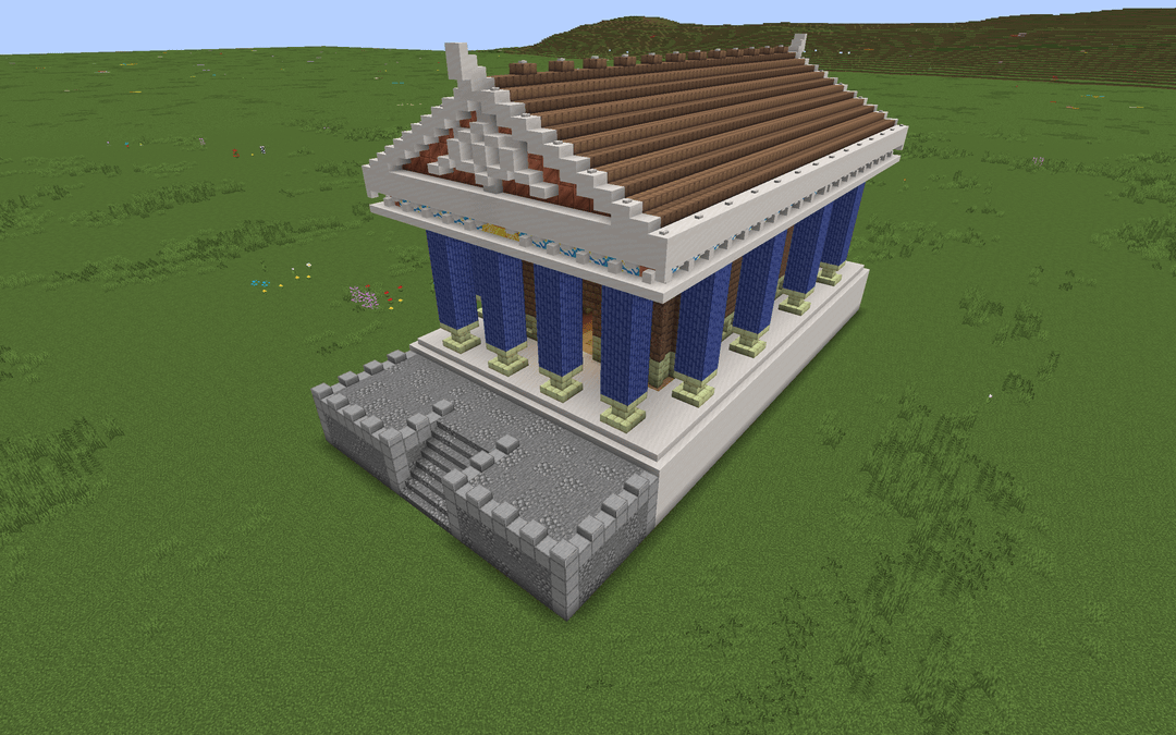 Things I've made note of for future iterations: There might be too much colour, so I'll likely forego the vibrant blocks of Oh The Biomes We've Gone. And, comparing to other builders' takes on Greek-style temples, I should make it a fair amount bigger. I plan on dotting these around a massive city I'm building, so I should really make them stand out more.
