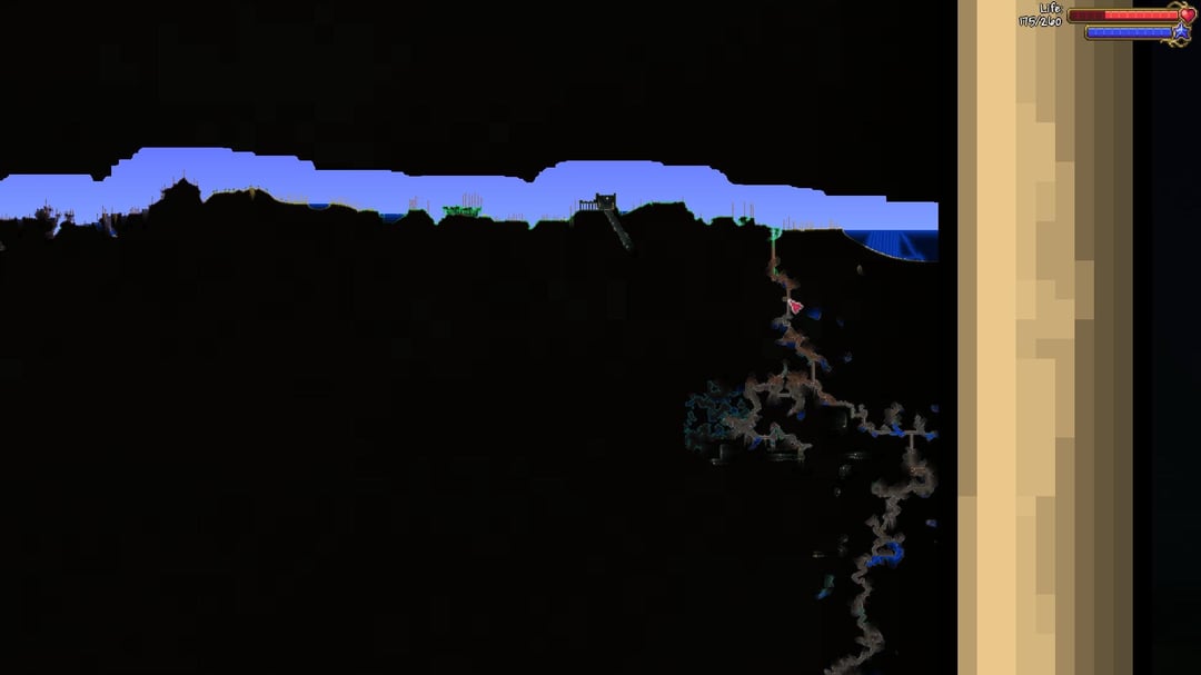 I look on the left side and its jungle so I say "alright, shimmers on the right so is the dungeon" I go to right side see the dungeon get a water candle then go to the ocean and start digging a little to the left of it so I can find the shimmer instead I find this goddamm wall they call a dungeon (pre boss btw)