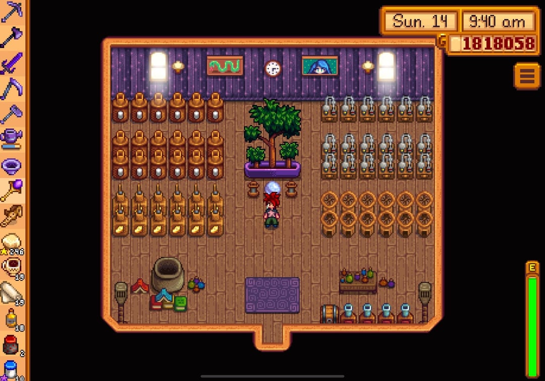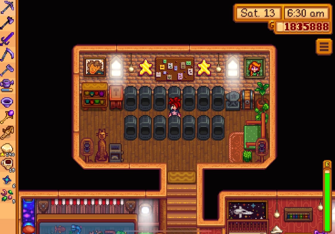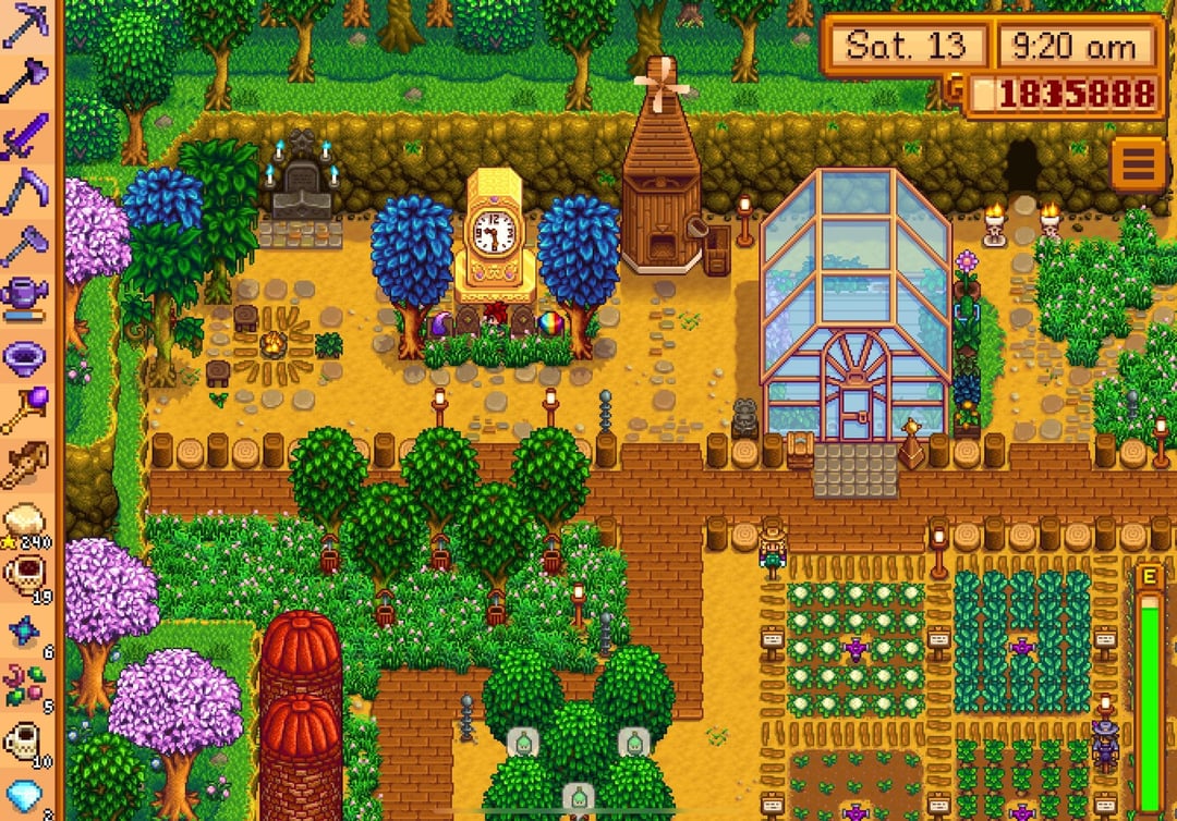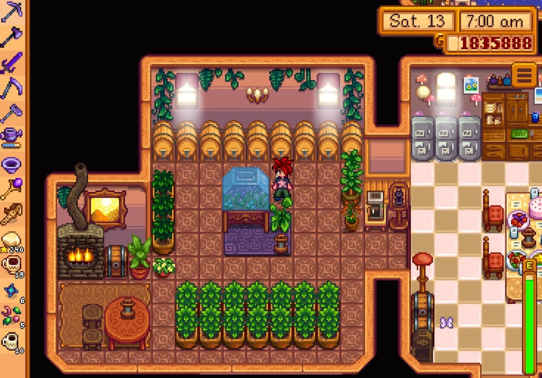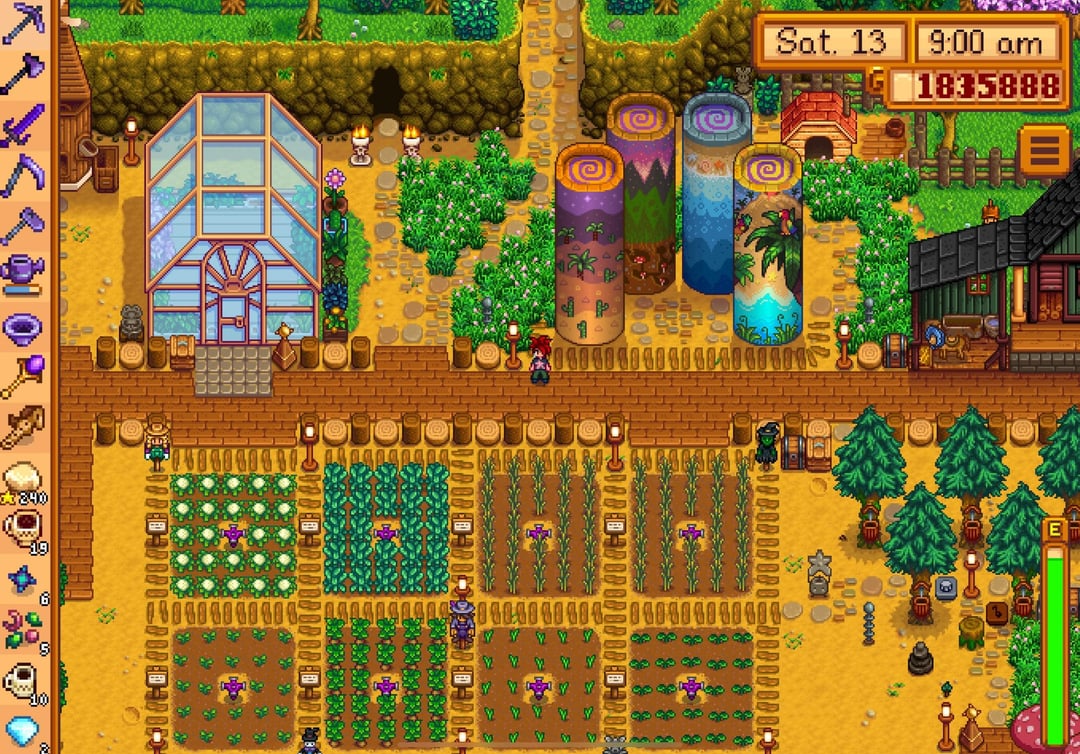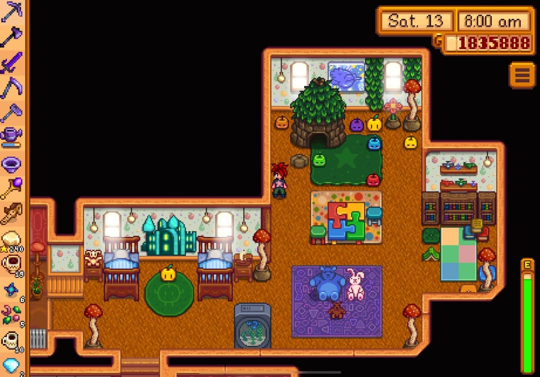 i reached perfection in winter of year 7 but waited to buy the golden clock until spring 1 of year 8 just because lol, so this is my farm/farmhouse (plus shed interiors) a couple weeks after reaching the summit!