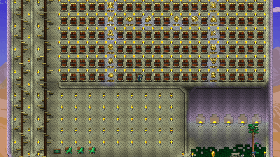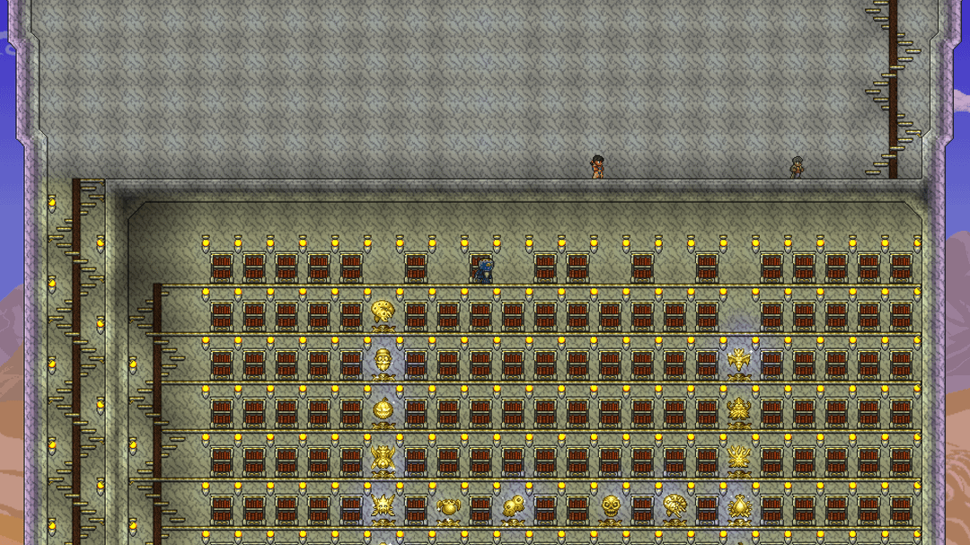 This entire project totalled to about 50 hours of work, and I am super happy with it. I used about 80k marble blocks and used the maximum possible space in Terraria for the build. (Re; Zero spoilers from here on out if you care) The Princess NPC can be named Emilia and I got lucky with her spawning in like that first try, and the remaining NPCs are supposed to be Rem (Stylist), Eridna (Bunny), Reid (Arms Dealer cuz they're both womanizers), and Roy/Lye (Dye Trader). I used Duke Fishron statues as Mabeast trophies, which took 24 kills to get all of them. I also used the relics you get from killing the bosses as books of the dead.