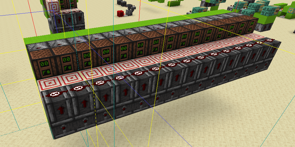 I uploaded a design for a copper bulb button panel earlier, this is a better version. Each module is one block wide and it can be tiled to 15 modules, with some modifications I believe infinite tiling would be possible. Like in my previous design and unlike many other designs the button are placed on copper bulbs. Both stone and wooden buttons work, but when using stone buttons isn't quite spam proof. When using wooden buttons, you cannot break the machine. The bulbs at the bottom, are simply the outputs.