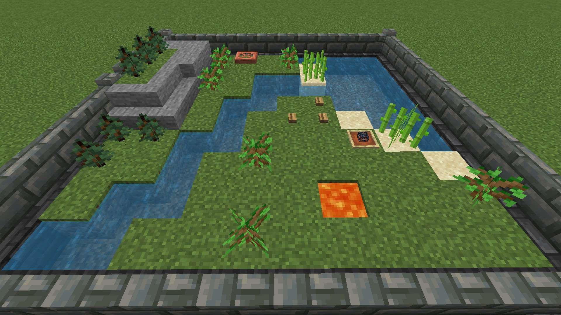 Hi guys, I want to start a new world and I was wondering if y'all had a seed anything like this, doesn't have to be exact. Buttons are a village, monster spawner is a monster room thing, copper trapdoor is a trial chamber, lava is a lava pit. Preferably not far from spawn, like less than 500 blocks away, but that is negotiable. I'm on bedrock.