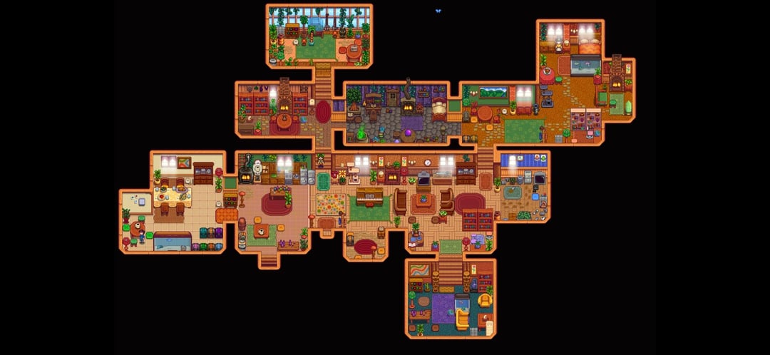 I saw somebody make a little greenhouse in the attic and I thought that was pretty cool. Also the kids room is wizard theme ✨🧙🏻♂️ by Smol_Fairy Stardew Valley