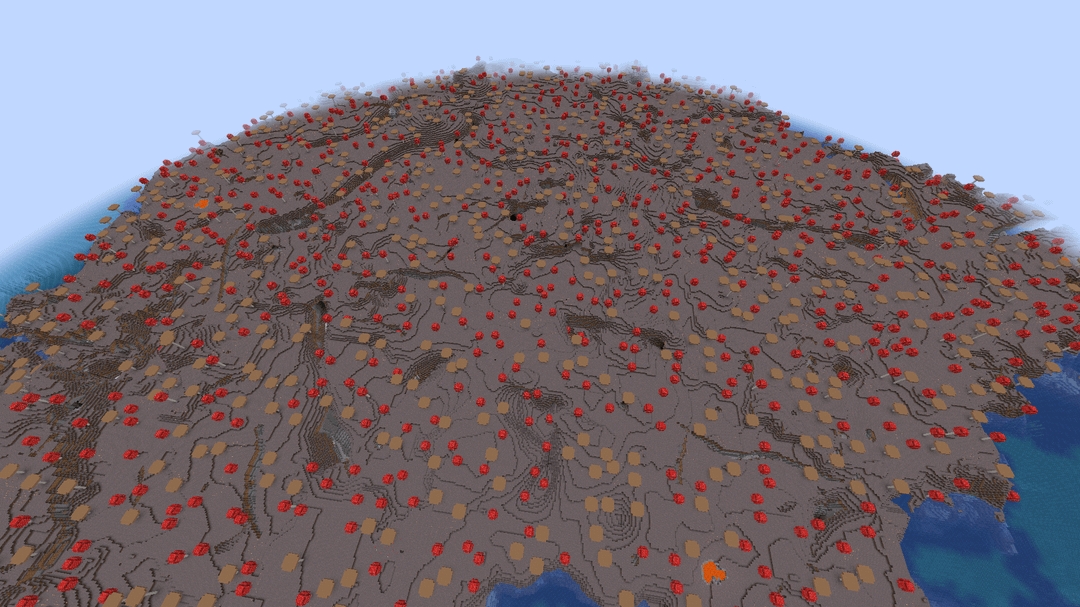 i was chillin on a creative world on minecraft 1.20.1 and found this giant mushroom fields, then i notice that not so far was a huge desert plateau so i look the seed on chunk base and wow