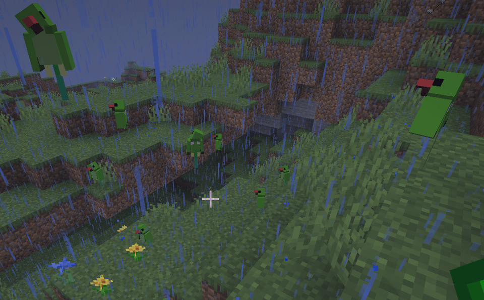 the neutral rose ringed parakeet mob, tameable with seeds, breedable with seeds (any seed type for both), flies and will attack mobs you attack, but will attack you if you attack it and call its friends