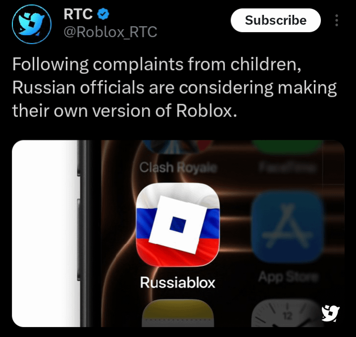 Probably gonna be called some shit like RUblox.