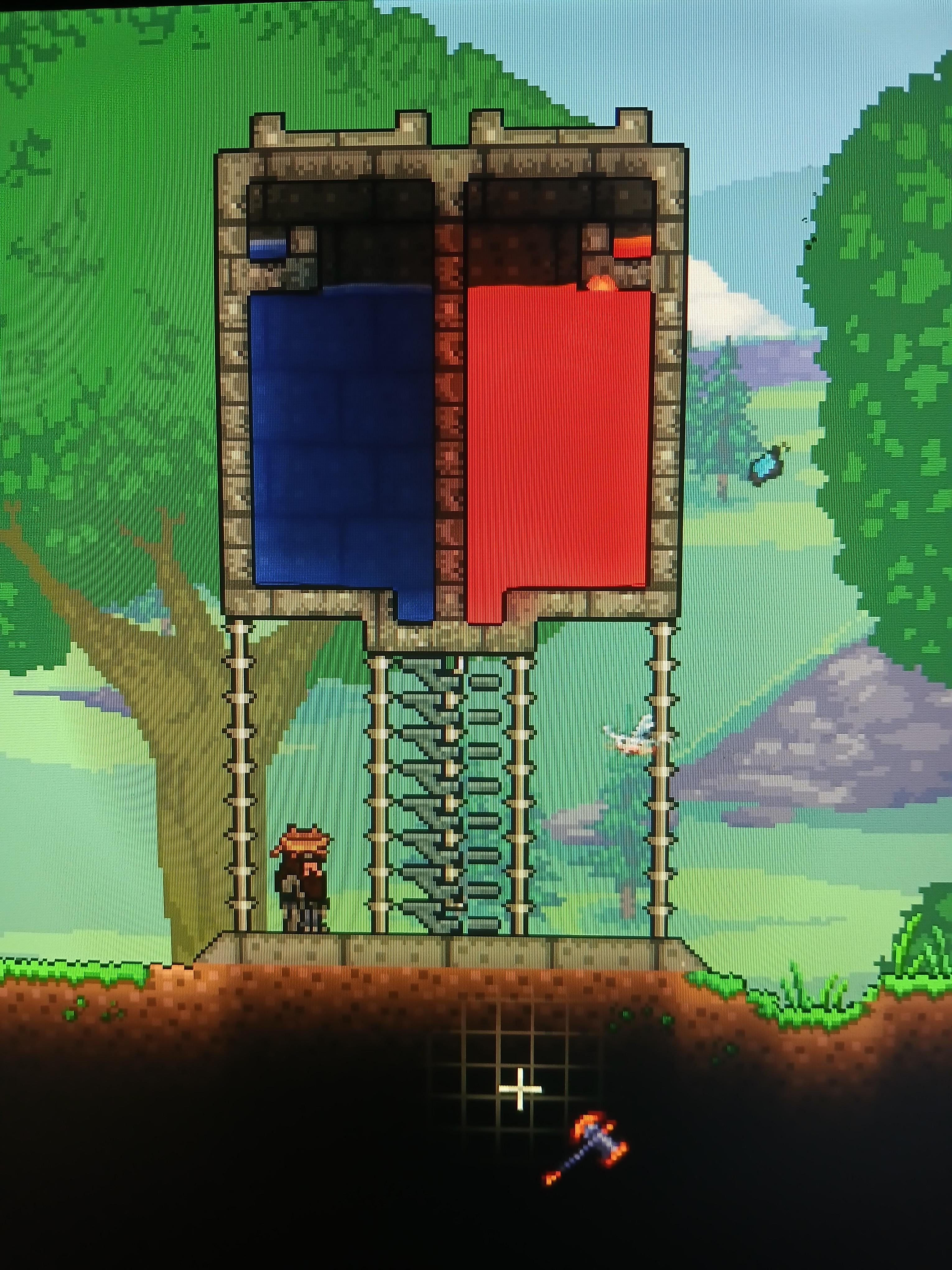 I wanted it to look like a water tower. Still not 100% happy with it but not sure what to do to it. It probably needs to be on a taller stand. Maybe put some antennas and lights on top. by NicholasTheRenegade Terraria