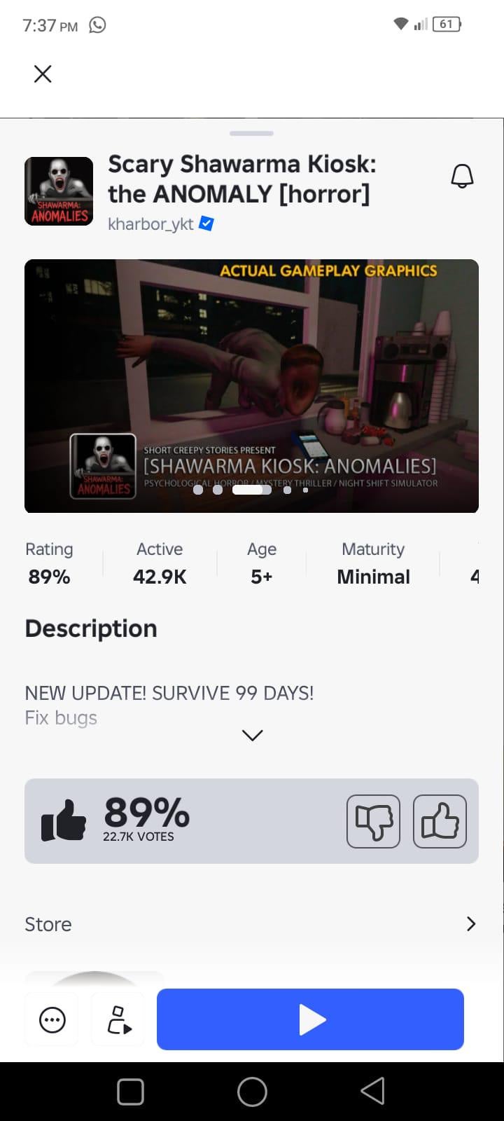 The perfect type of horror game im looking for. But I wish things inside the shop were more interactive and it had ambience noises.