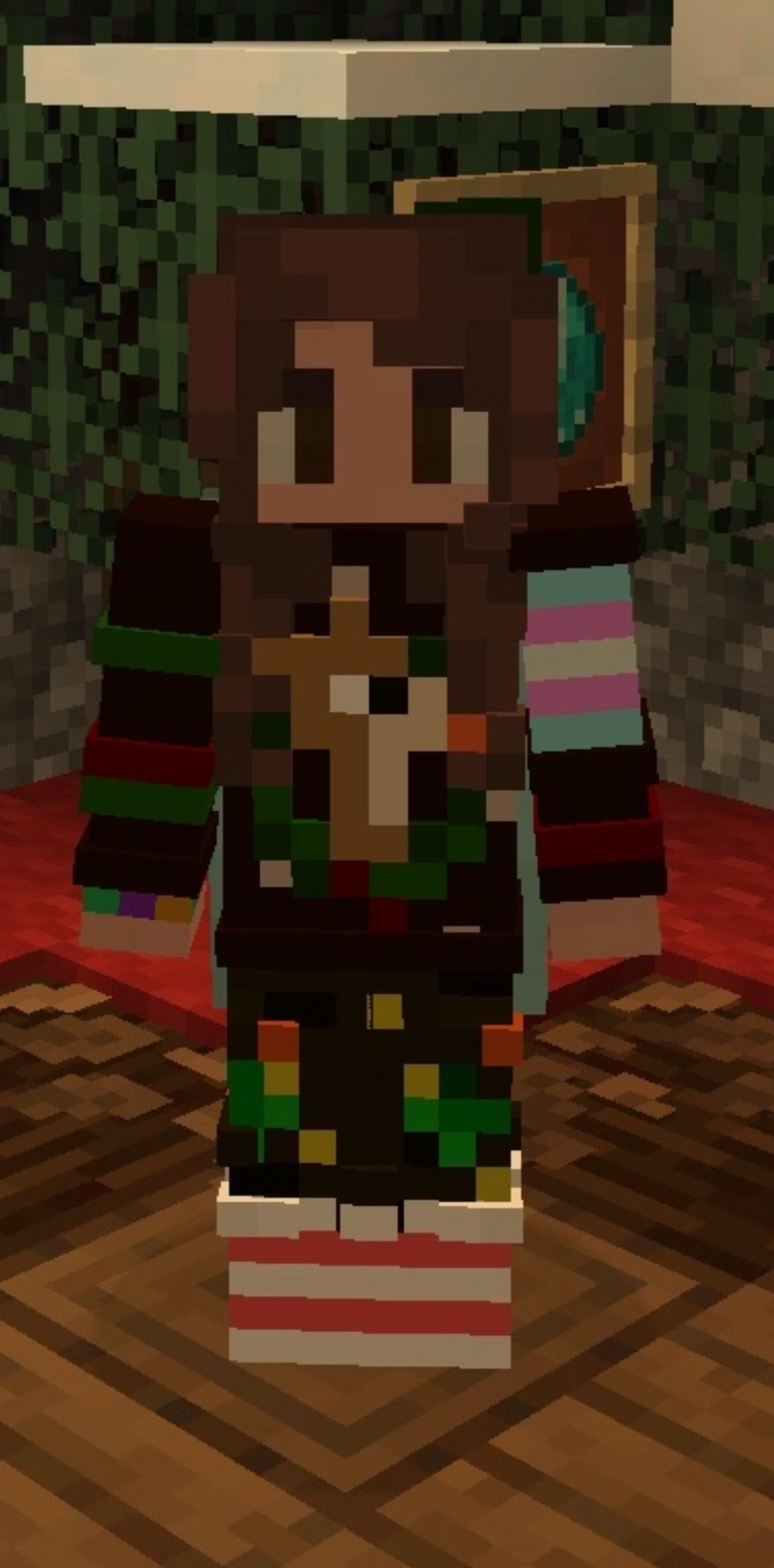 im super super proud of how it turned out! mistletoe/tree and light pajama pants, reindeer jumper, candycane socks, and a bracelet that is personal :3 by Childwithuke Minecraft