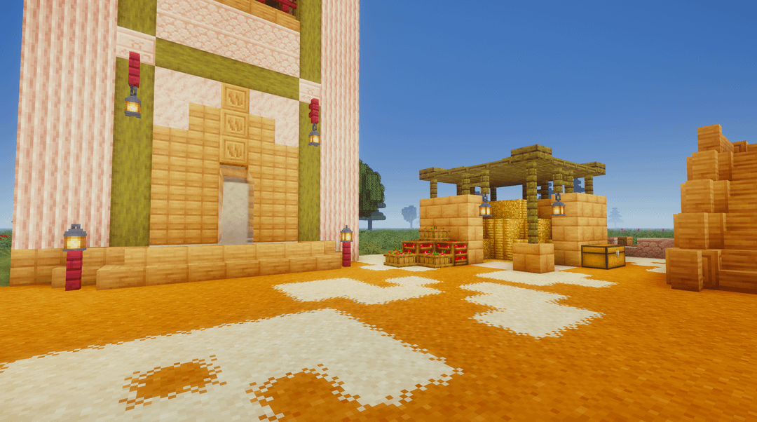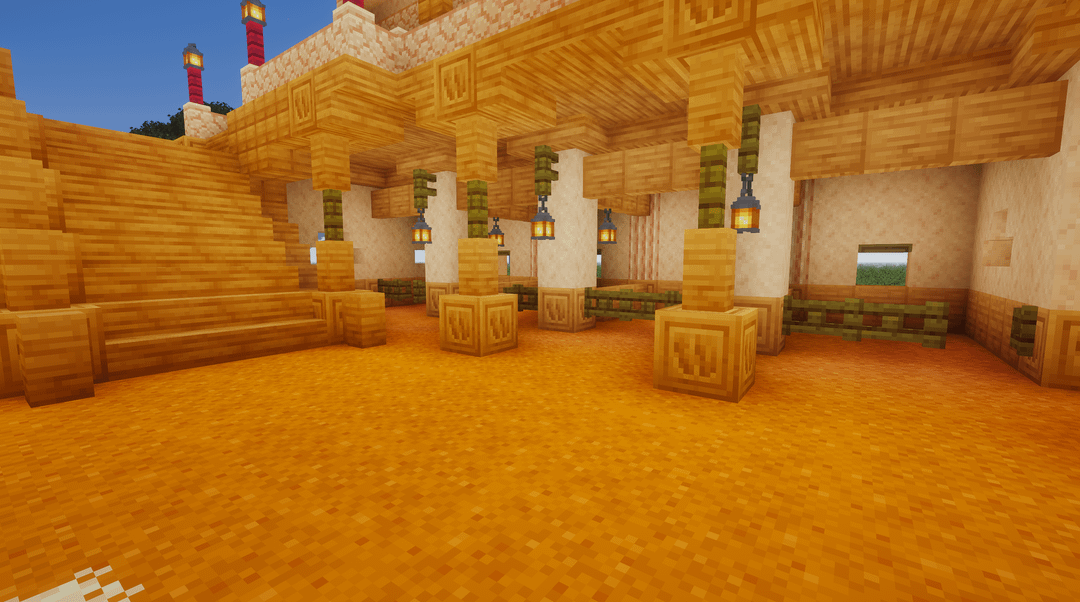 Ok ignore the superflat world lol, planning to move this to my survival world in a bit. It's a horse stable off the side of my main base and includes room for 8 horses and a place for horse feed and a drinking station. Most of the blocks used are from a mod pack called Homestead on CurseForge (Regions Unexplored, Nature's Spirit, and Oh The Biomes We've Gone)
