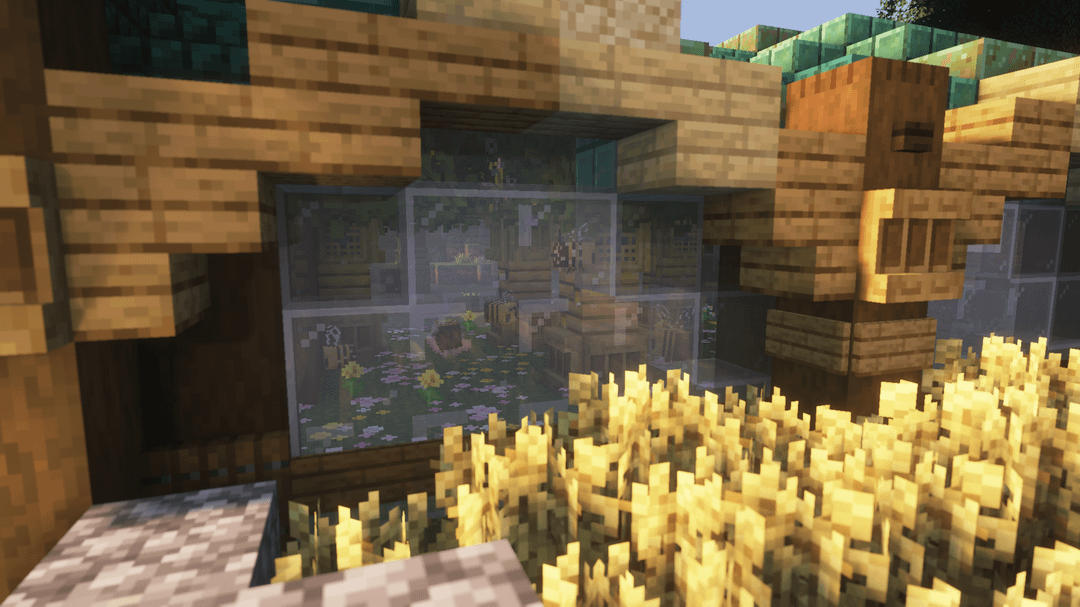 The Bee Farm is fully automatic and there are small farms inside the silos that produce bamboo cactus and bone meal. by Living_Shadows Minecraft Minecraft Builds