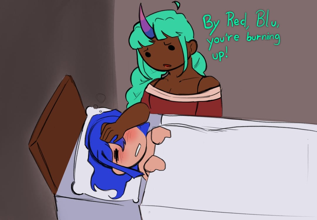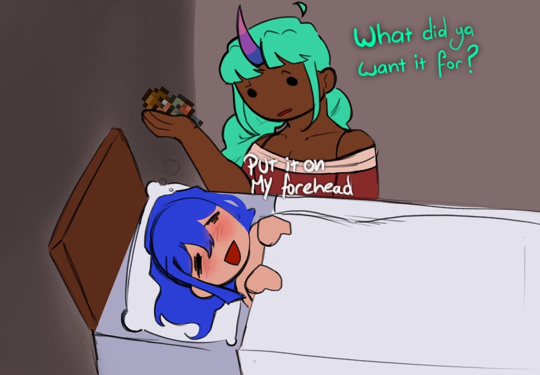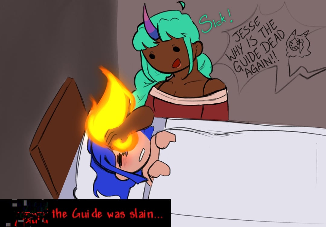 I have a fever so ofc I had to project it onto my guide burning terrarians.