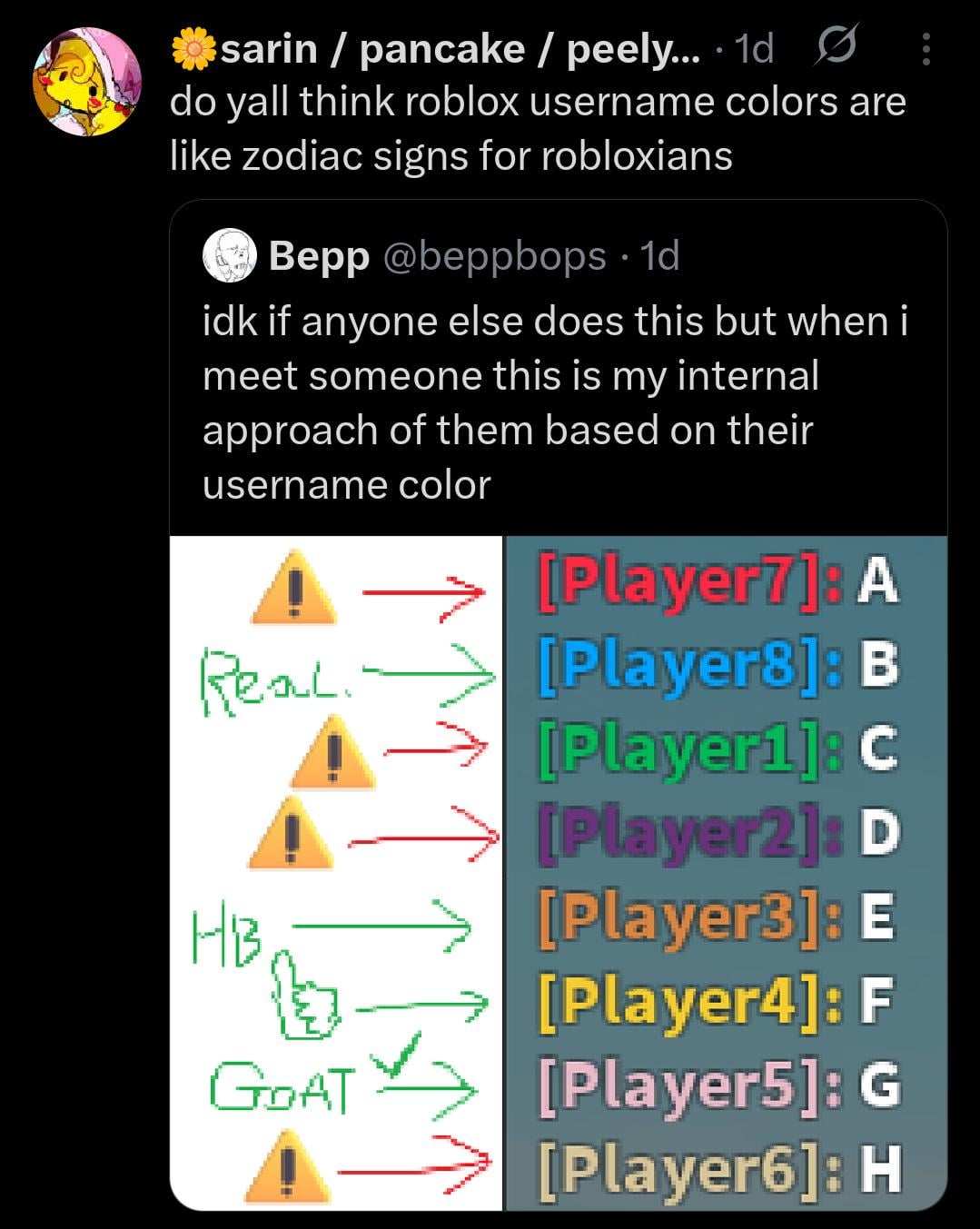 Roblox is down so I can’t link the game atm but there is a game that can show the colors for every possible username. It shows the values of each character and how they add up to a value that matches a particular color. Although I swear last time I played it, the calculations I just mentioned were gone lol