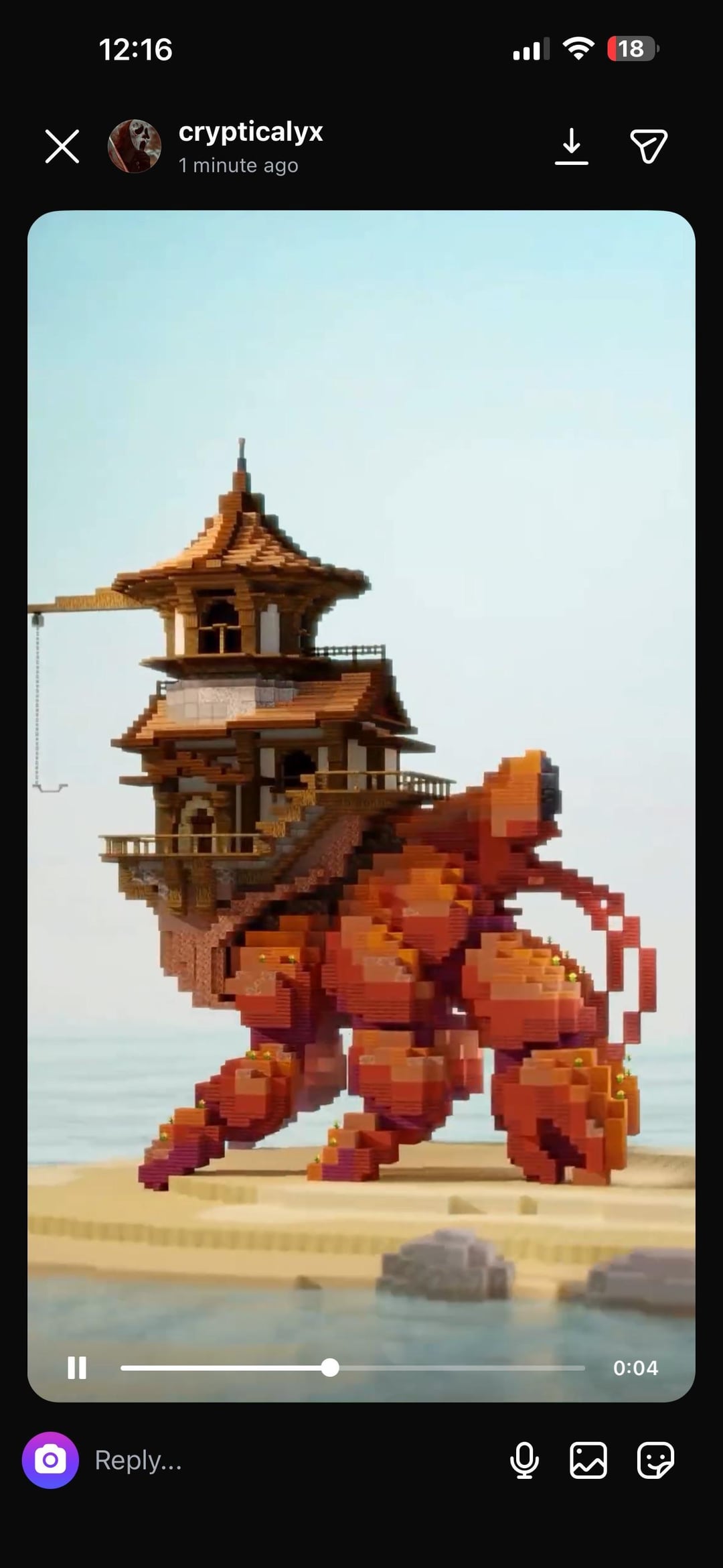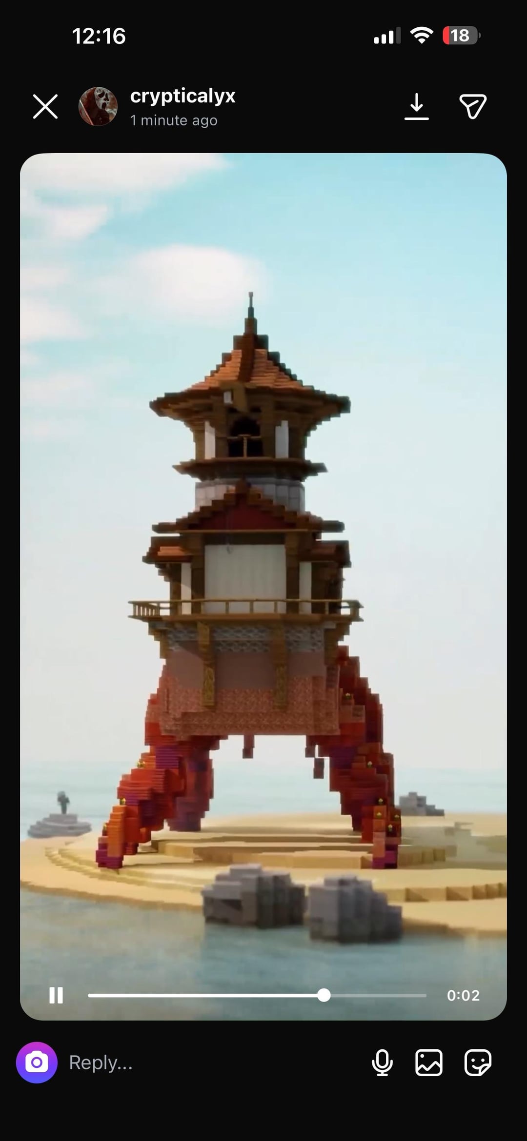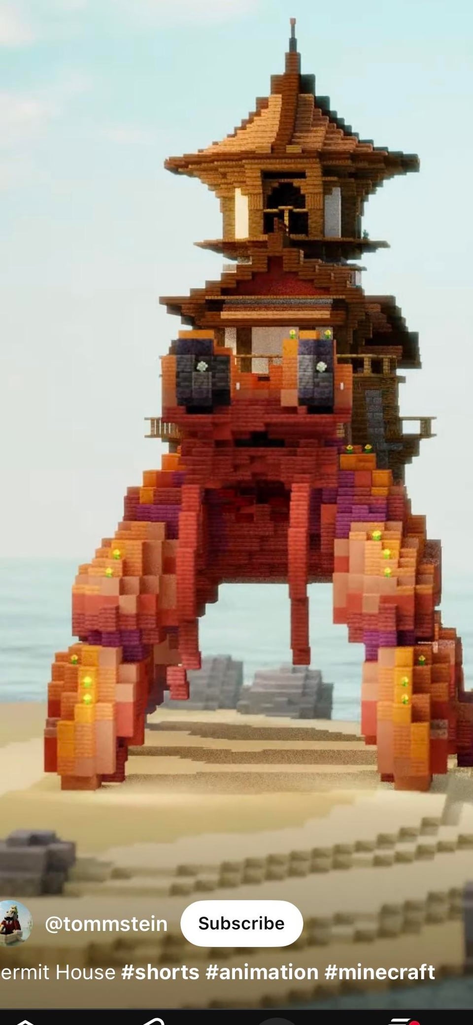 I found this build on a small youtube channel, all it is is a YouTube short where the camera circles around. Im having trouble pinpointing exactly what blocks are used for the legs. The lighting and animation software is throwing me off. I want to build this in my survival world