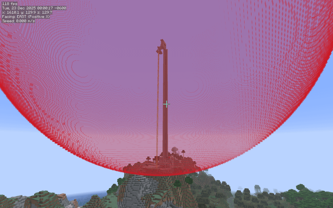 Trying to light up the area around my afk spot using miniHud and the shape renderer doesn't seem to be rendering correctly from inside the sphere, making it next to impossible to tell where it intersects with the land. I combed through all the settings, and nothing seemed to fix it