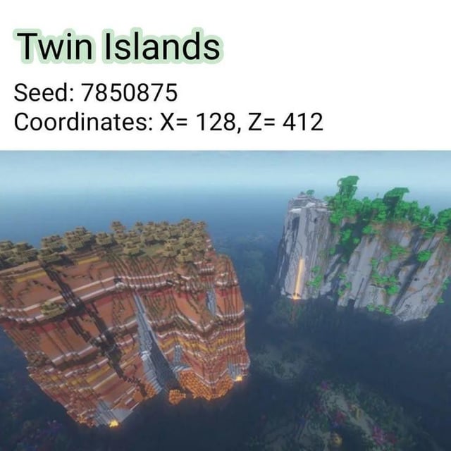 For the twin islands, you spawn on the right one in a cove like place, very pretty and the one you spawn on is bigger than it look+ there is a tiny one next to it