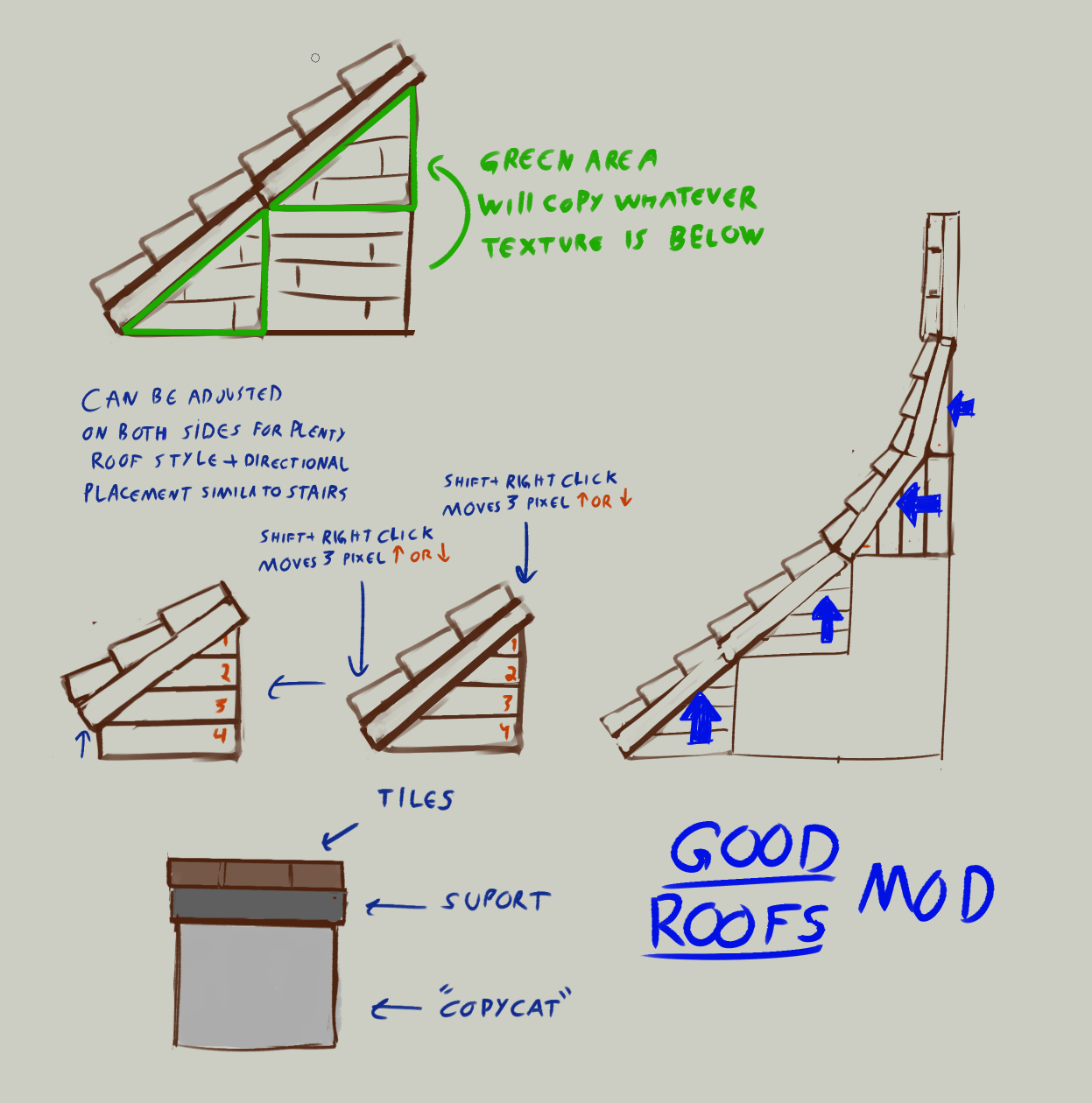 I dont really like the more popular roof mod options available (cough cough macaw's cough cough), so I doodled what the perfect roof mod would be for me by altaccountforidk Minecraft Minecraft Java Edition Modded Minecraft