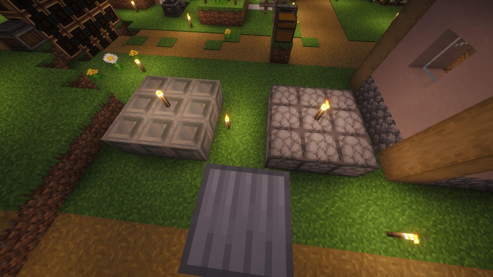 On the left is chiseled tuff bricks, on the right is sturdy stone and the one I'm standing on is a block of iron!