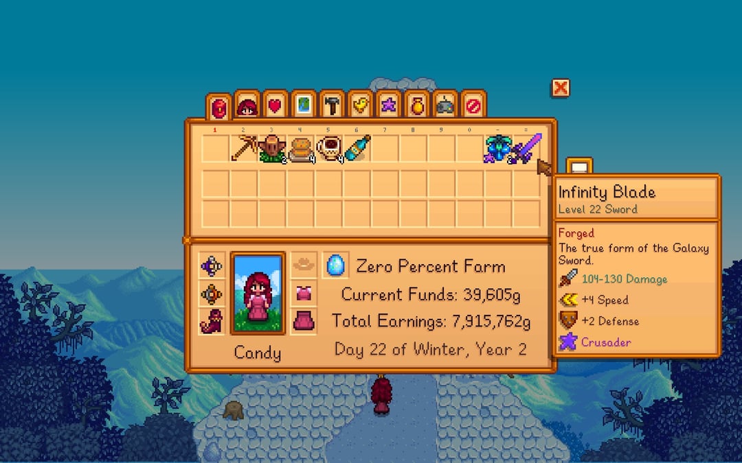 Endgame starts by unlocking the Dangerous Skull Cavern (Summer 22, Year 2). Just day after day of getting to the Dangerous Skull Cavern, kill everything, collecting the materials to craft into moneymaking items. The plan is to earn 6.5M, buy 13 waivers, and offset the other 3 totems plus the golden clock.