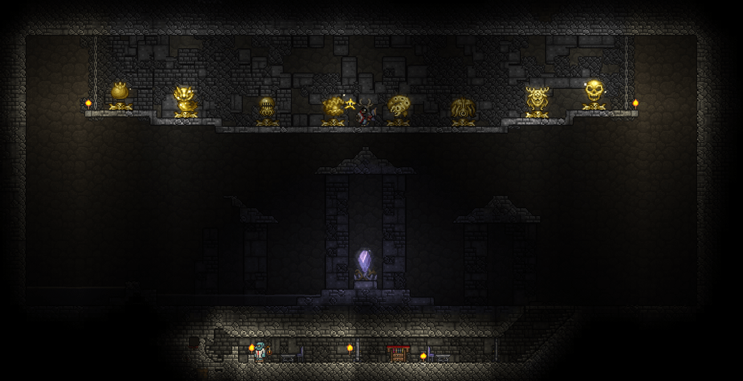 Im not sure how to completly make the underground trophy room shine, but I'm content with the above ground Pylon by NoImLeeslide3 Terraria
