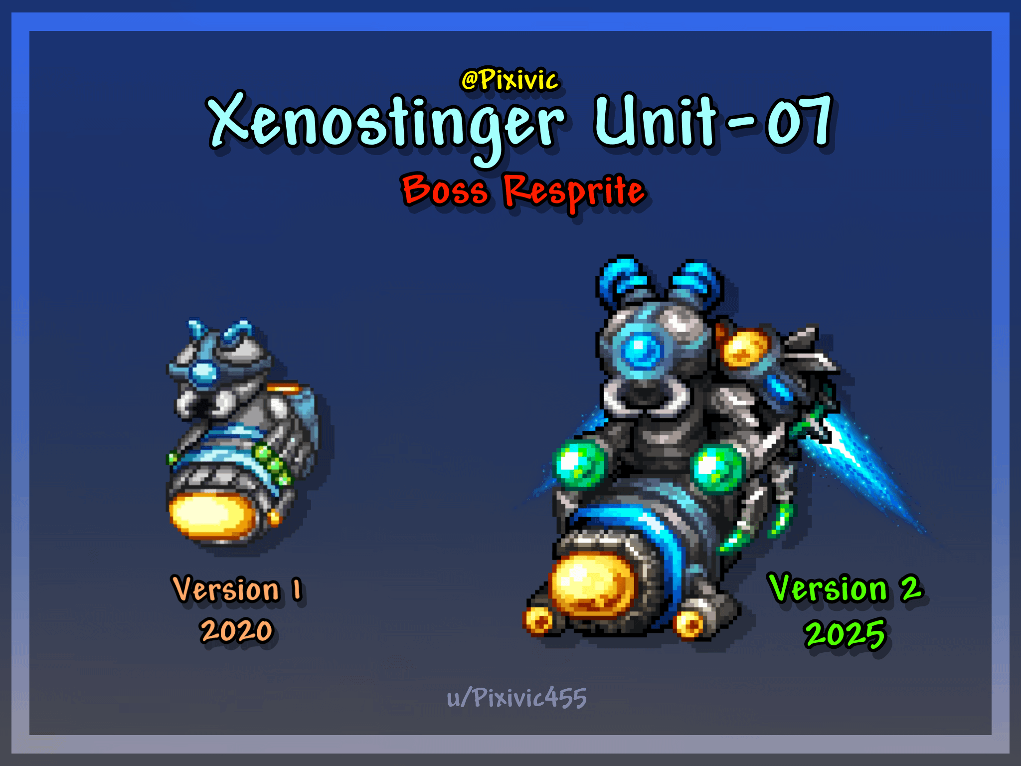 This is part of the Terrafusion i used to do back then, just decided to resprite it today, i planned to make a mod out of it but the programming part scares me although i have a vision for it, even the attack patterns, Drops, and even it's own Arena (Space Hive) which becomes accessible after defeating Martian Madness, so if any experienced Mod programmer out there who wants to collab, hit me up on discord (pixivic).