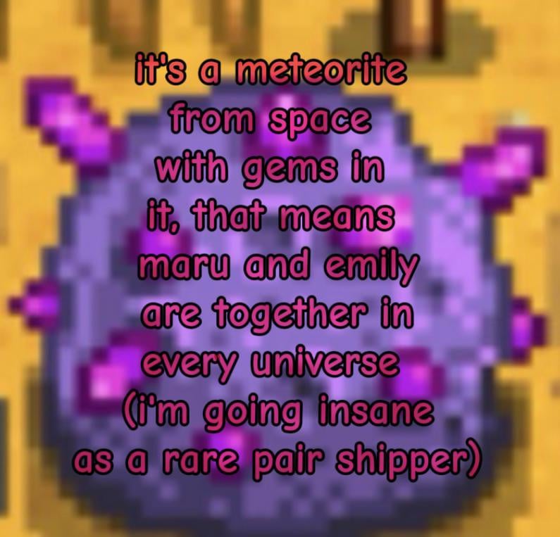 2. So i went and looked up Emily/Maru on Ao3 and there was exactly one story listed and OH FUCK NO (do not read; like MASSIVE CW warning stuff)