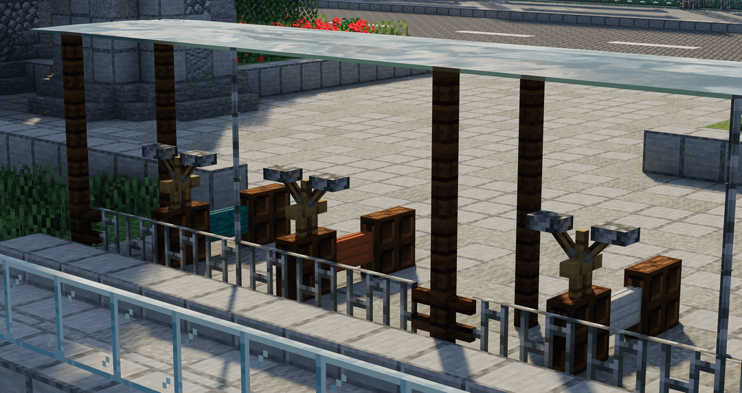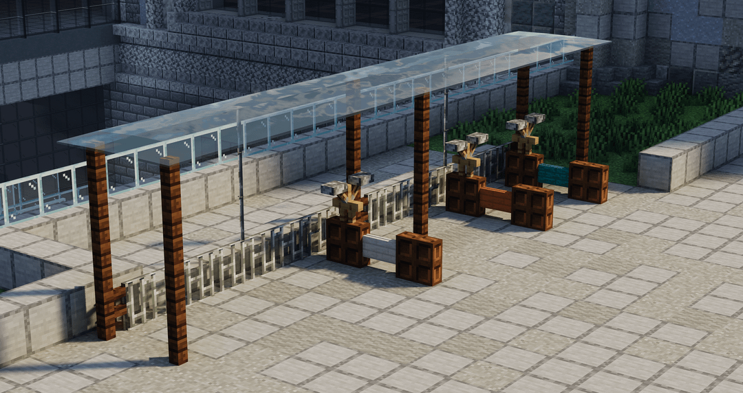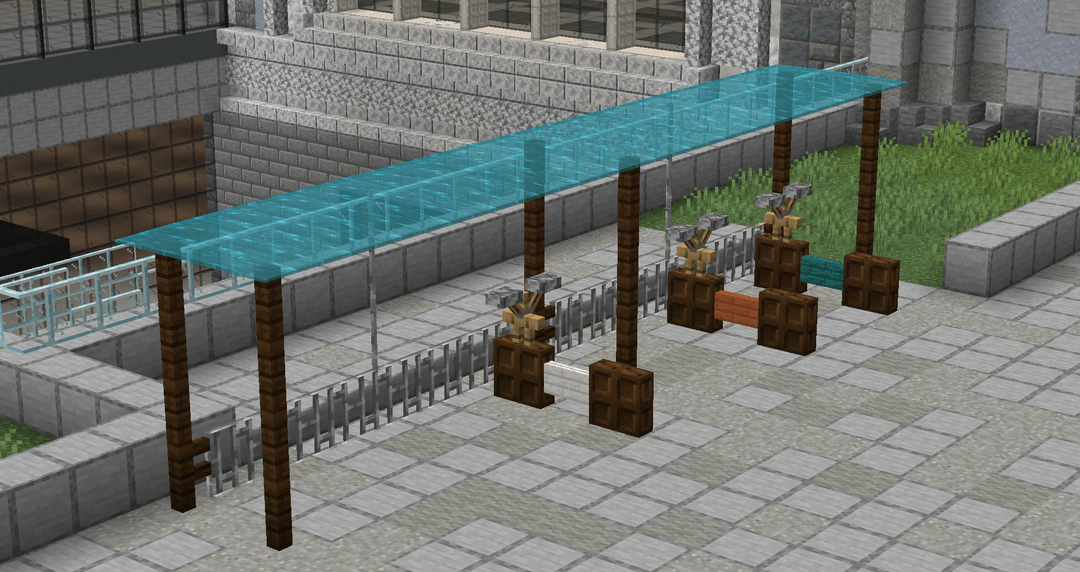 I created a simple bicycle and bicycle rack design The roof is made using level 1 water to mimic thin glass Works great for modern builds where regular glass blocks are too thick by Current-Wear5405 DetailCraft Minecraft