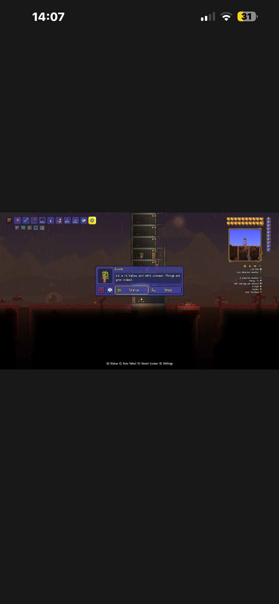 1. Always drink a [biome sight potion](https://terraria.wiki.gg/wiki/Biome_Sight_Potion), just to go through it all and see if anything lights up pink
