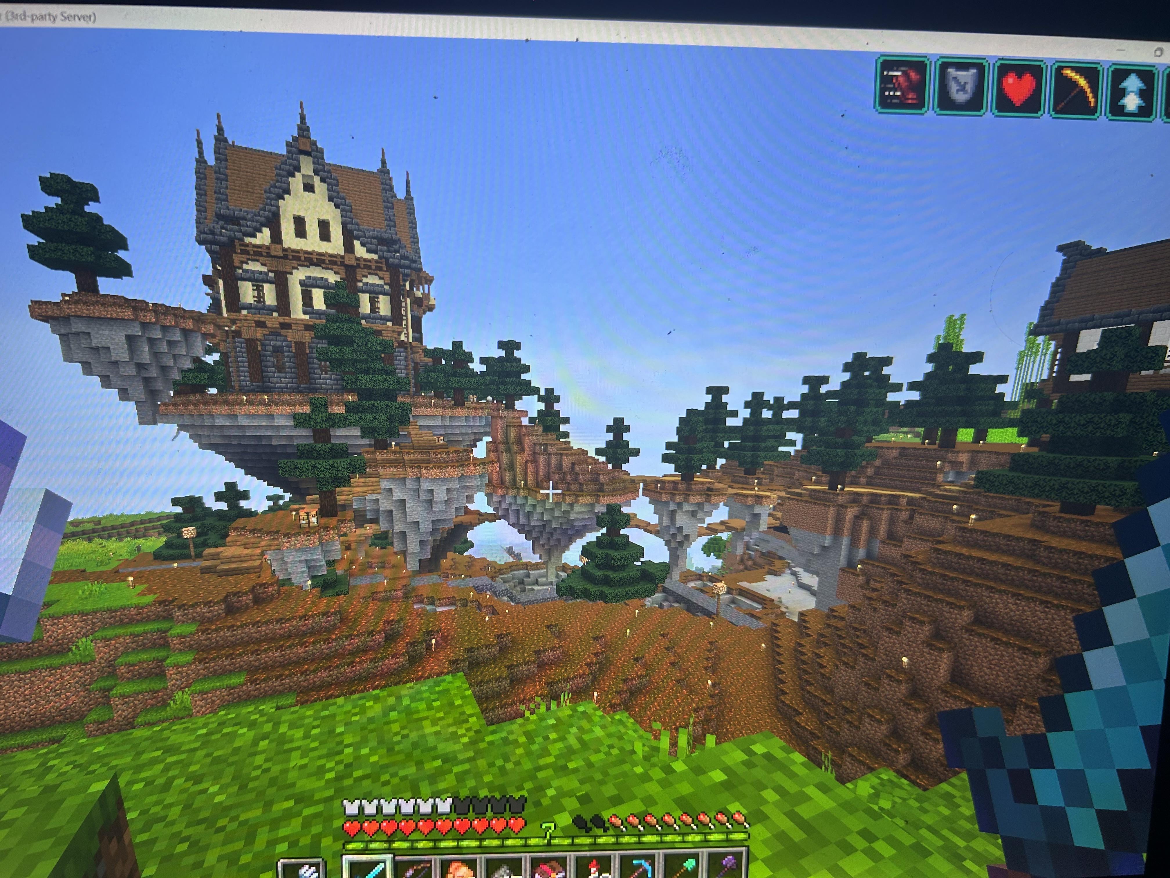 I made it so the lore was that the pod soil was magically lifting the land creating this floating islands. I connected the islands with paths and tunnels and made my house on the largest island. by Sad-Situation8905 Minecraft Minecraft Builds