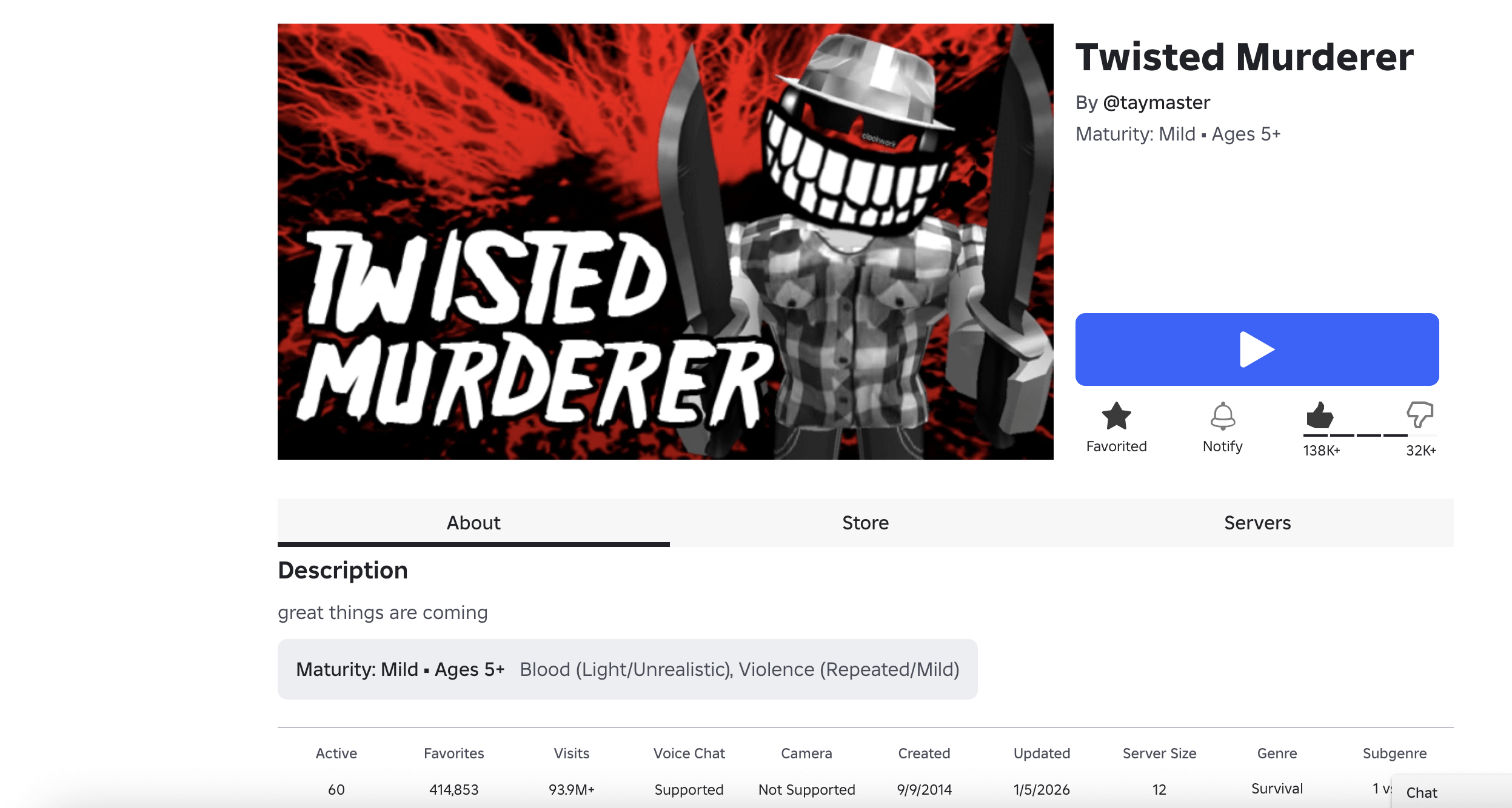 Twisted Murderer has officially return to roblox and is now getting updates! If you love the 2014 vibes of Roblox and played this game before, I recommend playing it