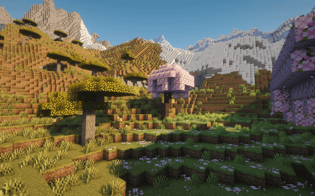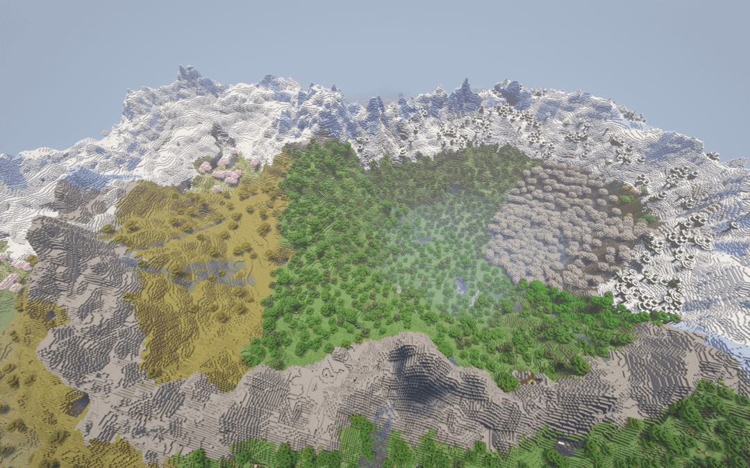 2048000552393630338 You spawn inside the mountain ring Wood types are oak, spruce, birch, jungle, dark oak, acacia, bamboo, cherry, and pale oak. Only mangrove is missing because it is incompatible with mountains. by estradying Minecraft Minecraft Seeds