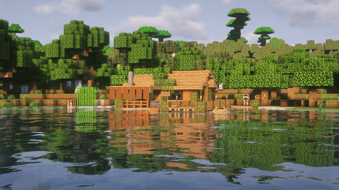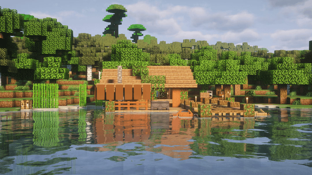 Minecraft fishing hut built with acacia and jungle wood. This screenshot came from my casual minecraft world and i thought it might be good enough to post here. by Spare-Ad-6426 Minecraft Minecraft Builds