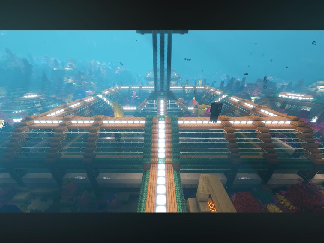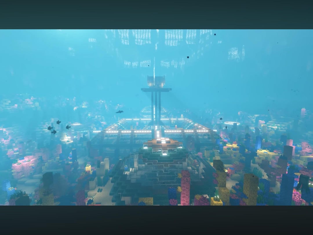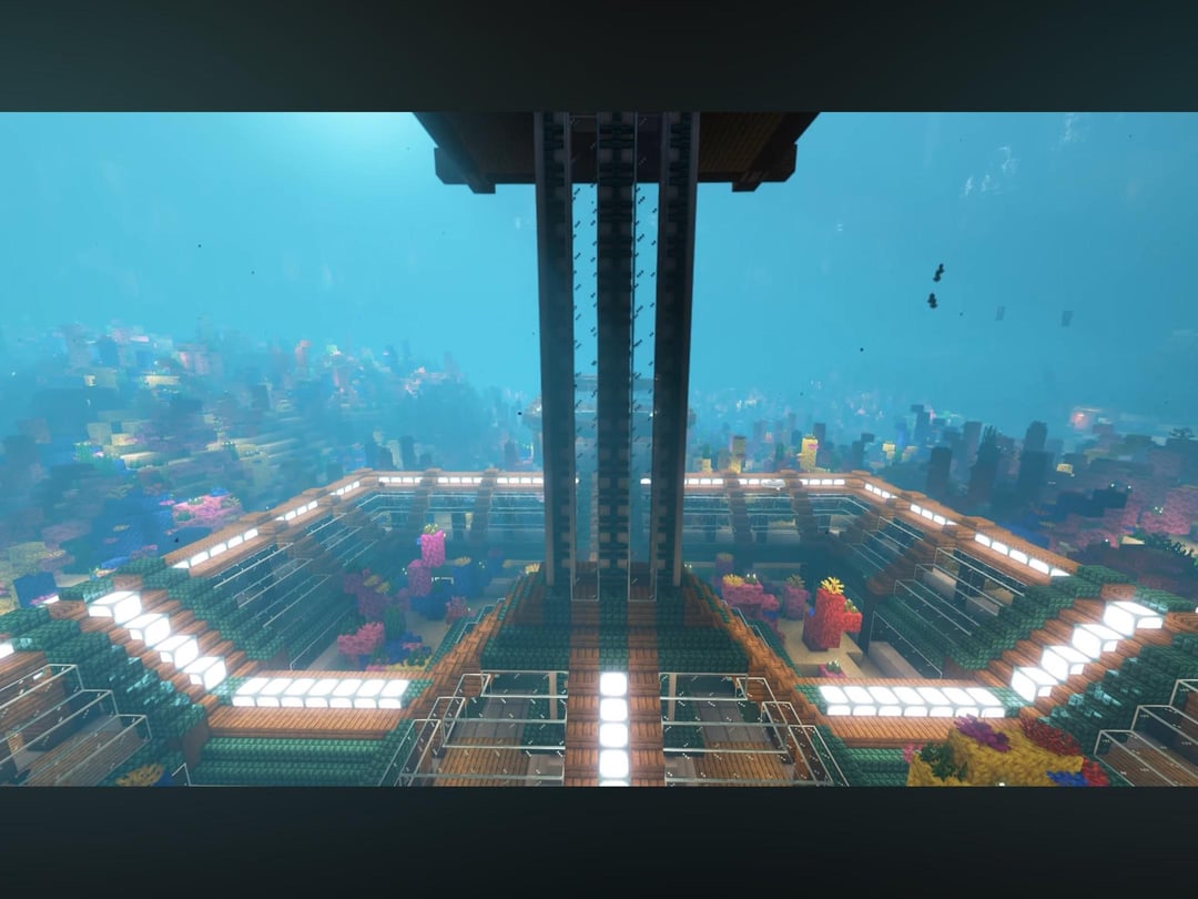 Nice build idea! You could try posting your blueprint and preferred biomes with the seed request that way people can suggest seeds with wide oceans + big coral reef areas that fit your base layout.