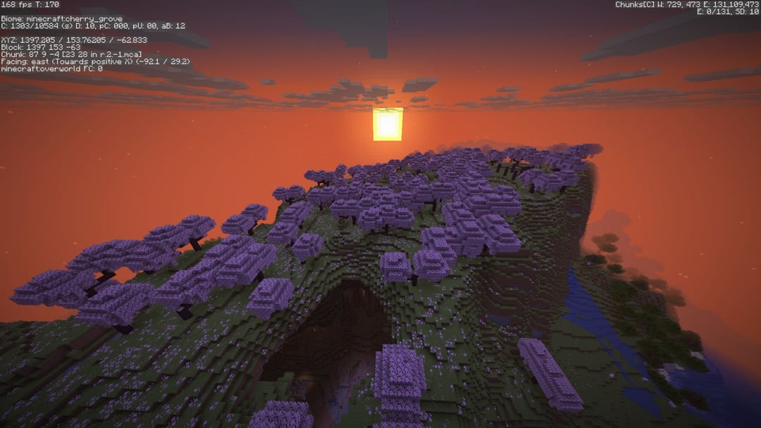 I recently started a new world and when I was looking for a place where to build my base, I came across this gigantic cave underneath the cherry blossom biome. It has a lot of building potential and there is a village nearby. Also, pale garden biome is in a ~500 blocks radius.
