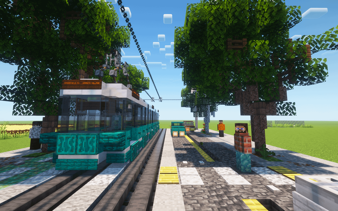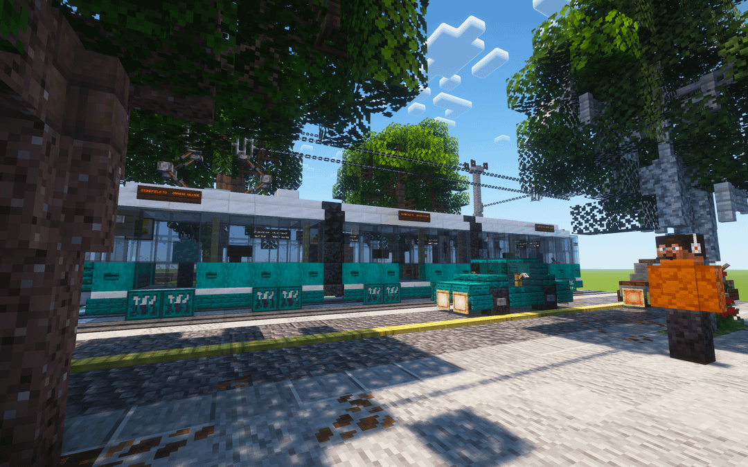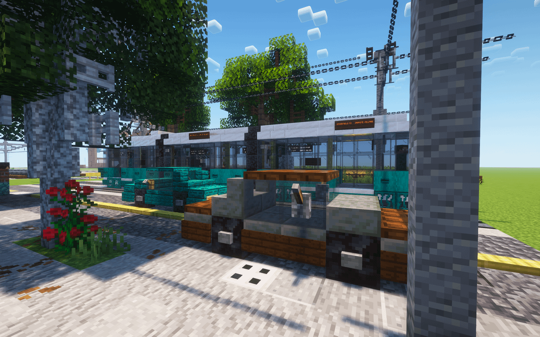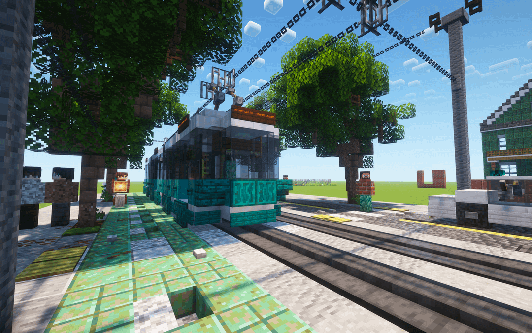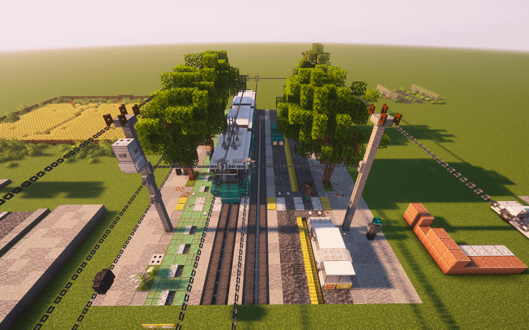 The pedestrian crossing features bamboo pressure plates (tactile plates for visually impaired people). There are also power lines with transformers. by cannedcroissant Minecraft Minecraft Builds