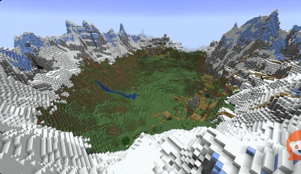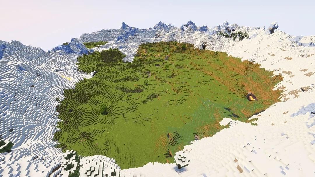 looking for a valley without ice caps. like this hopefully with an opening or being horseshoe shaped. want to make hobbit holes with friends who are new to minecraft. [bedrock]